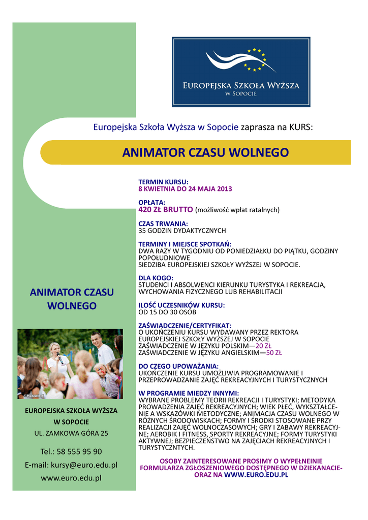 animator czasu wolnego - Europejska Szkoła Wyższa w Sopocie