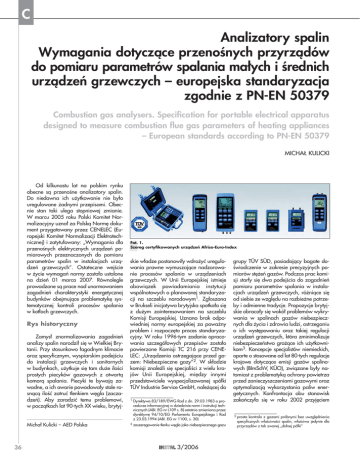 C Analizatory spalin Wymagania dotyczące przenośnych przyrządów do pomiaru parametrów spalania małych i średnich urządzeń grzewczych – europejska standaryzacja zgodnie z PN-EN 50379 Combustion gas analysers. Specification for portable electrical apparatus designed to measure combustion flue gas parameters of heating appliances – European standards according to PN-EN 50379 MICHAŁ KULICKI Od kilkunastu lat na polskim rynku obecne są przenośne analizatory spalin. Do niedawna ich użytkowanie nie było uregulowane żadnymi przepisami. Obecnie stan taki ulega stopniowej zmianie. W marcu 2005 roku Polski Komitet Normalizacyjny uznał za Polską Normę dokument przygotowany przez CENELEC (Europejski Komitet Normalizacji Elektrotechnicznej) i zatytułowany: „Wymagania dla przenośnych elektrycznych urządzeń pomiarowych przeznaczonych do pomiaru parametrów spalin w instalacjach urządzeń grzewczych”. Ostateczne wejście w życie wymagań normy zostało ustalone na dzień 01 marca 2007. Równolegle prowadzone są prace nad unormowaniem zagadnień charakterystyki energetycznej budynków obejmujące problematykę systematycznej kontroli procesów spalania w kotłach grzewczych. Rys historyczny Zamysł znormalizowania zagadnień analizy spalin narodził się w Wielkiej Brytanii. Przy stosunkowo łagodnym klimacie oraz specyficznym, wyspiarskim podejściu do instalacji grzewczych i sanitarnych w budynkach, użytkuje się tam duże ilości prostych piecyków gazowych z otwartą komorą spalania. Piecyki te bywają zawodne, a ich awarie powodowały stale rosnącą ilość zatruć tlenkiem węgla (zaczadzeń). Aby zaradzić temu problemowi, w początkach lat 90-tych XX wieku, brytyj- Michał Kulicki – AED Polska 36 Fot. 1. Szereg certyfikowanych urządzeń Afriso-Euro-Index skie władze postanowiły wdrożyć uregulowania prawne wymuszające nadzorowanie procesów spalania w urządzeniach grzewczych. W Unii Europejskiej istnieje obowiązek powiadamiania instytucji wspólnotowych o planowanej standaryzacji na szczeblu narodowym1. Zgłoszona w Brukseli inicjatywa brytyjska spotkała się z dużym zainteresowaniem na szczeblu Komisji Europejskiej. Uznano brak odpowiedniej normy europejskiej za poważny problem i rozpoczęto proces standaryzacyjny. W roku 1996-tym zadanie opracowania szczegółowych przepisów zostało powierzone Komisji TC 216 przy CENELEC: „Urządzenia ostrzegające przed gazem: Niebezpieczne gazy”2. W składzie komisji znaleźli się specjaliści z wielu krajów Unii Europejskiej, między innymi przedstawiciele wyspecjalizowanej spółki TÜV Industrie Service GmbH, należącej do 1 2 Dyrektywa 83/189/EWG Rad z dn. 29.03.1983 o procedurze informacyjnej w dziedzinie norm i instrukcji technicznych (ABI. EG nr L109 s. 8) ostatnio zmieniona przez dyrektywę 94/10/EG Parlamentu Europejskiego i Rad z 23.03.1994 (ABI. EG nr 1100, s. 30) zaszeregowanie tlenku węgla jako niebezpiecznego gazu 3/2006 grupy TÜV SÜD, posiadający bogate doświadczenie w zakresie precyzyjnych pomiarów stężeń gazów. Podczas prac komisji starły się dwa podejścia do zagadnień pomiaru parametrów spalania w instalacjach urządzeń grzewczych, różniące się od siebie ze względu na rozbieżne potrzeby i odmienne tradycje. Propozycje brytyjskie obracały się wokół problemów wykrywania w spalinach gazów niebezpiecznych dla życia i zdrowia ludzi, ostrzeganiu o ich występowaniu oraz takiej regulacji urządzeń grzewczych, która zminimalizuje niebezpieczeństwo grożące ich użytkownikom3. Koncepcje specjalistów niemieckich, oparte o stosowane od lat 80-tych regulacje krajowe dotyczące emisji gazów spalinowych (BImSchV, KÜO), związane były natomiast z problematyką ochrony powietrza przed zanieczyszczeniami gazowymi oraz optymalizacją wykorzystania paliw energetycznych. Konfrontacja obu stanowisk zakończyła się w roku 2002 przyjęciem 3 prosta kontrola z gazami próbnymi bez uwzględnienia specyficznych właściwości spalin, właściwa jedynie dla przyrządów z tak zwanej „dolnej półki”