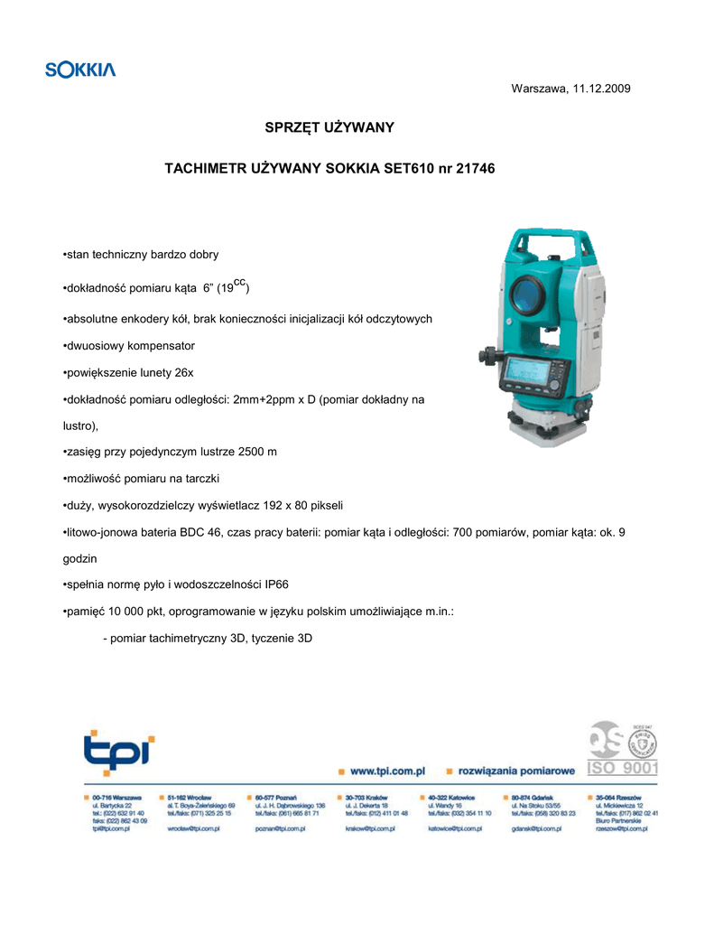 SPRZĘT UŻYWANY TACHIMETR UŻYWANY SOKKIA SET610