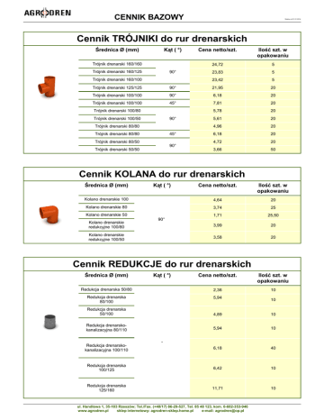 Cennik TRÓJNIKI do rur drenarskich Cennik KOLANA do rur