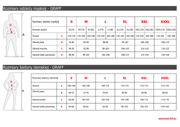 Rozmiary odzieży męskiej - GRAFF Rozmiary bielizny