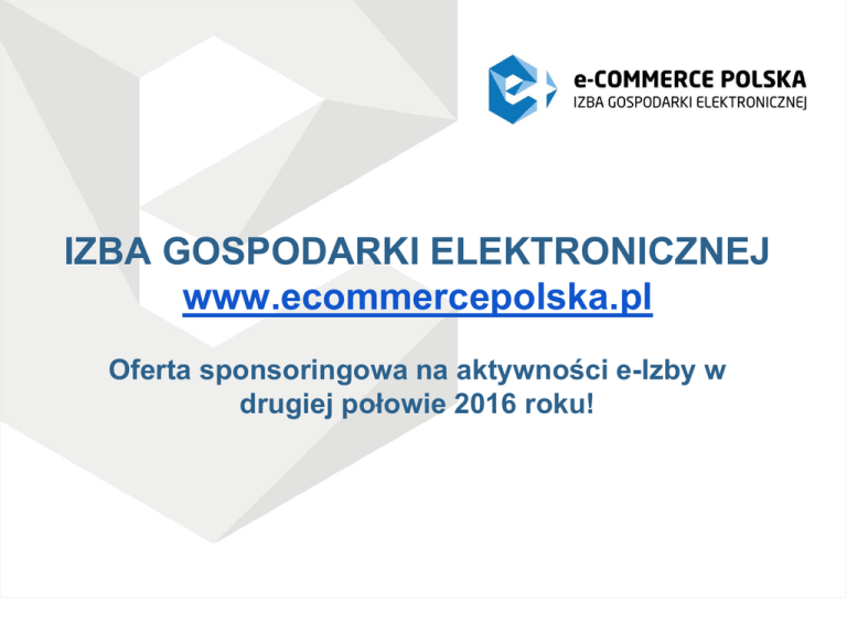 IZBA GOSPODARKI ELEKTRONICZNEJ www.ecommercepolska.pl Oferta sponsoringowa na aktywności e-Izby w drugiej połowie 2016 roku! e-Izba - IZBA GOSPODARKI ELEKTRONICZNEJ | 1 ŚNIADANIA E-COMMERCE POLSKA W drugiej połowie 2016 roku zaplanowaliśmy legislacyjne „Śniadania e-Commerce Polska” – spotkania w formie śniadań, w trakcie których będą poruszane istotne tematy legislacyjne z punktu widzenia gospodarki elektronicznej, mające istotny wpływ na prowadzenie działalności gospodarczej i funkcjonowanie firm. Zakres podstawowy • Cyfryzacja usług komunikacji, e-Identyfikacja i usługi zaufania - wciąż wyzwanie czy już konieczność? Jakie są możliwości wsparcia i rozwoju cyfrowej identyfikacji i usług zaufania w poszczególnych branżach gospodarki cyfrowej - wrzesień 2016 Wideo blog e-Commerce Polska Commerce Polska. - wywiady legislacyjne z ekspertami prawnymi oraz uczestnikami Śniadań e- Zakres opcjonalny • Prawne aspekty marketingu internetowego • Ochrona baz klientów i tajemnicy przedsiębiorstwa • Odpowiedzialność usługodawców w Internecie • Wyzwania legislacji krajowej w aspekcie Jednolitego Rynku Cyfrowego i Jednolitego Rynku Kapitałowego • Prawne aspekty Omnichannel • Usługa pocztowa vs usługa kurierska: innowacyjne technologie w zakresie dostarczania przesyłek; nowe wyzwania, stare problemy na europejskim rynku w zakresie przesyłek i paczek; dostawy jako ważny element rozwoju e-handlu e-Izba - IZBA GOSPODARKI ELEKTRONICZNEJ | 2 ZASPONSORUJ ŚNIADANIE E-COMMERCE POLSKA - OFERTA Oferujemy: •Zamieszczenie logotypu sponsora na zaproszeniach •Zamieszczenie logotypu sponsora na stronie internetowej ecommercepolska.pl w części z zaproszeniem na Śniadanie •Zamieszczenie logotypu i podziękowań na social media •Zamieszczenie rollupu w trakcie sponsorowanego Śniadania Oczekujemy: •Opłacenia kosztów sponsoringu: 5000 PLN netto •Zaangażowania merytorycznego e-Izba - IZBA GOSPODARKI ELEKTRONICZNEJ | 3 komunikacja EDUKACJA I NETWORKING e-Izba - IZBA GOSPODARKI ELEKTRONICZNEJ | 4 SZKOŁA E-COMMERCE POLSKA – NOWA ODSŁONA NOWA ODSŁONA SZKOŁY E-COMMERCE POLSKA 2016! 1. Zajęcia będą trwały 4 godziny: •Dwie godziny teorii, •Dwie godziny praktyki opartej na case studies sklepów obecnych na szkoleniu. 2. Szkoła e-Commerce Polska będzie kończyła się egzaminem dla uczestników, którzy uzyskają 80% frekwencję na zajęciach. 3. Egzamin – test online (mobile i PC) zostanie przygotowany przez prowadzących (ekspertów e-Izby) poszczególne warsztaty w danym bloku. Na każdy z pięciu bloków tematycznych przypada po 5 pytań (łącznie 25). 4. Uczestnik ukończy egzamin z wynikiem pozytywnym po udzieleniu 80% prawidłowych odpowiedzi na pytania z testu. 5. Egzamin kończący Szkołę e-Commerce Polska odbędzie się 25 listopada 2016 r.. Czas na uzupełnienie: 30 minut. 6. Osoby, które ukończą egzamin z wynikiem pozytywnym, będą mogły odebrać dyplomy w połowie grudnia 2016 r. Od 2016 zmiany organizacyjne prowadzenia Szkoły e-Commerce Polska! Wprowadzamy egzaminy i dyplomy. Kontakt: [email protected]: [email protected] lub [email protected] e-Izba - IZBA GOSPODARKI ELEKTRONICZNEJ | 5 ZASPONSORUJ SZKOŁĘ E-COMMERCE POLSKA Oferujemy: •Zamieszczenie logotypu sponsora na zaproszeniach •Zamieszczenie logotypu sponsora na stronie internetowej ecommercepolska.pl w części o Szkole e-Commerce Polska •Zamieszczenie logotypu i podziękowań na social media •Zamieszczenie rollupu w trakcie odbywającej się Szkoły e-Commerce Polska •Komunikację do uczestników Szkoły e-Commerce Polska Oczekujemy: •Opłacenia kosztów sponsoringu jednej Szkoły e-Commerce Polska - 1000 PLN netto •Zaangażowania merytorycznego Pakiety sponsoringowe: •Opłacenie kosztów sponsoringu trzech Szkół e-Commerce Polska: 2500 PLN netto •Opłacenie kosztów sponsoringu 12 Szkół e-Commerce Polska: 10 000 PLN netto ( w tym pakiecie dodatkowo oferujemy logotyp sponsora na dyplomach) e-Izba - IZBA GOSPODARKI ELEKTRONICZNEJ | 6 PORADNIKI e-Commerce Polska 2016 PORADNIKI E-COMMERCE POLSKA Poradniki e-Commerce Polska powstają w odpowiedzi na zapotrzebowanie rynku na rzetelną wiedzę z zakresu e-commerce. Materiały są przygotowane przez ekspertów Izby Gospodarki Elektronicznej oraz prelegentów Szkoły e-Commerce Polska. Planowane w drugiej połowie roku 2016: •Poradnik “e-Commerce Polska: social media w e-commerce” – październik 2016 •Poradniki tematyczne dotyczące sezonowości sprzedaży: wrzesień 2016 •Poradnik “e-Commerce Polska: Start-up i nowe technologie w e-commerce. Na co należy zwrócić szczególną uwagę w ujęciu prawnym” - wydanie: listopad 2016 e-Izba - IZBA GOSPODARKI ELEKTRONICZNEJ | 7 ZASPONSORUJ PORADNIKI E-COMMERCE POLSKA - OFERTA Oferujemy: •Zamieszczenie logotypu reklamodawcy w poradniku •Zamieszczenie logotypu reklamodawcy na stronie internetowej ecommercepolska.pl w części o poradniku •Zamieszczenie logotypu w mailingach o poradniku •Zamieszczenie podziękowania reklamodawcy poradnika na social media Oczekujemy: •Opłacenia kosztów reklamy na okładce poradnika: 2200 PLN netto •Opłacenia kosztów reklamy w poradniku: 700 PLN netto •Zaangażowania merytorycznego e-Izba - IZBA GOSPODARKI ELEKTRONICZNEJ | 8 DIGITAL COMMERCE - KONFERENCJE Serdecznie zapraszamy na specjalistyczną konferencję: "Wejście sklepu w model omnichannel". Konferencja jest organizowana 3.10.2016 r. w Sienna Training Centre w Warszawie przez Izbę Gospodarki Elektronicznej. 3.10.2016 Program konferencji został podzielony na specjalistyczne bloki: • Procesy technologiczne w omnichannel • Marketing w omnichannel • Biznes omnichannel "Wejście Konferencja będzie miała podejście warsztatowe do tematów. W trakcie wydarzenia eksperci Izby Gospodarki Elektronicznej poruszą zagadnienia z zakresu: • logistyki • zarządzania stokiem • franczyzy • Pick&Collect czy Click&Collect – p