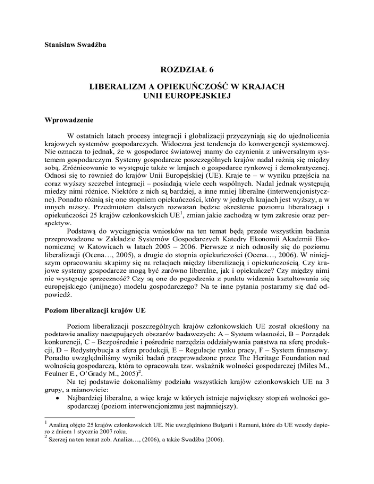ROZDZIAŁ 6 LIBERALIZM A OPIEKUŃCZOŚĆ W KRAJACH UNII