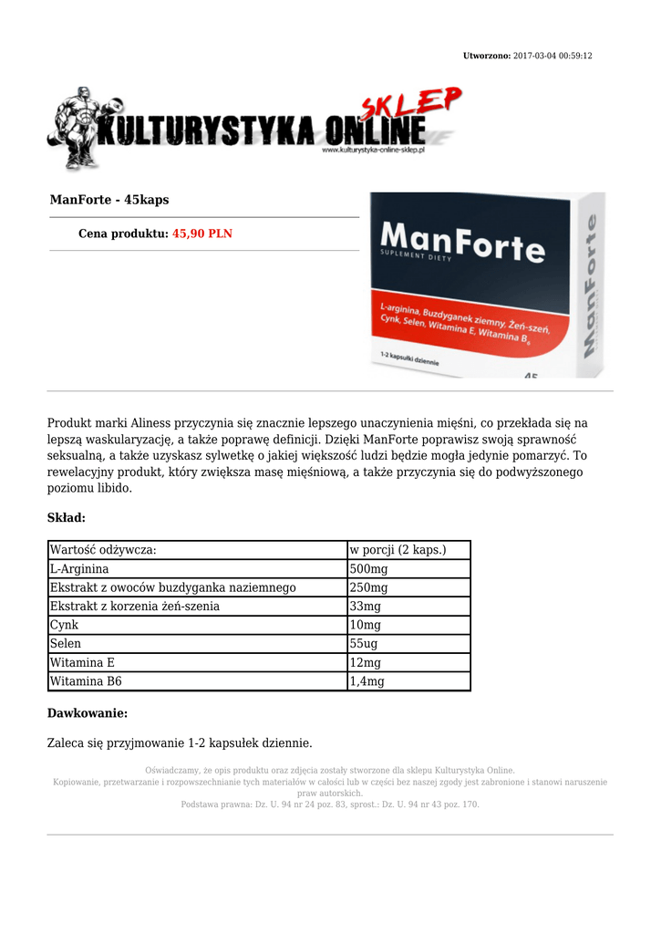 ManForte - 45kaps Produkt marki Aliness przyczynia się znacznie