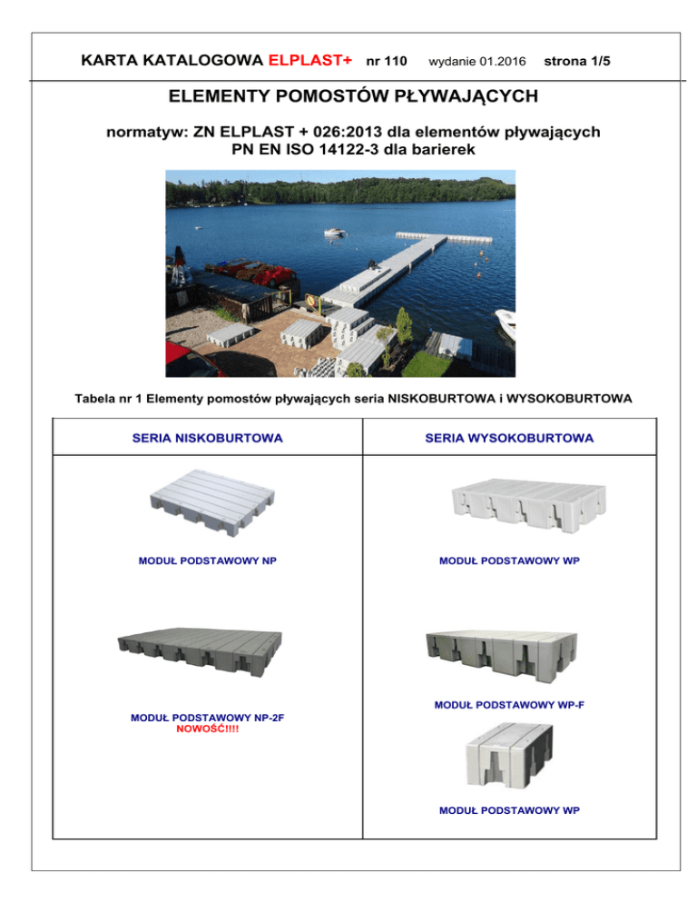 Karta katalogowa Elementy pomostów pływających