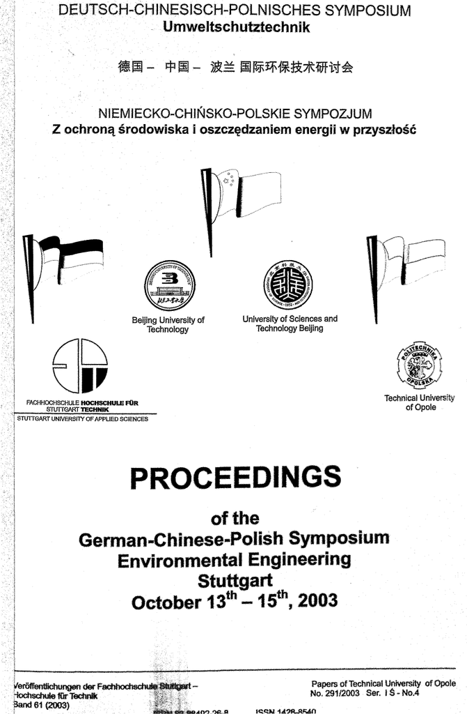 DEUTSCH-CHINESISCH-POLNISCHES SYMPOSIUM Umweltschutztechnik NiEMIEGKO-CHllQSKO-POLSKlE SYMPOZJUM Z ochronq srodowiska S oszczedzaniem energii w przyszfosc v Beijing University of Technology University of Sciences and Technology Beijing Teehnicat University ofOpole FACHHOCHSCHULE HOCHSCHULE WOm STUTTemr UNIVERSITY OF APPLIED SCIENCES PROCEEDINGS ofth© P©Iish Symposiiim Environmental Englnaerinf Stuttfart October 13 t h -15 t h , 2§03 ' p No, 29112083 • Ser. I § - Ne.4 Table of contents 1. Welcoming addresses • • • • • • • • • Prof. Dr. Martin Stohrer, President, Stuttgart University of Applied Sciences, Germany Prof. Helmut G Hohnecker, Dean, Stuttgart University of Applied Sciences, Germany Dr. Wolfgang Schuster, OB Stuttgart, Germany Dr. Hans-Eberhard Koch, LVI e.V., Stuttgart, Germany Prof. Dr. Ze Zhang, President, Beijing University of Technology, China Chen Shilu, Vice President, University of Science & Technology Beijing, China Prof. Piotr Wach, President, Technical University of Opole, Poland Prof. Roman Ulbrich, Technical University of Opole, Poland Alexander Koch + Dr. Ing. Youwang Song, KSI Stuttgart, Germany 13 17 19 21 23 25 27 29 31 2. Main speeches 2.1 Advanced drying systems heated with sludge granulate as fuel 33 2.2 Helmut G. Hohnecker and Georg Krebs, Stuttgart University of Applied Sciences, Germany Okologische Stadtentwicklung: Schamhauser Park in Ostfildern 71 4 S M t S I : J&#fftSfftlS (Ostfildem) MihM& (Schamhauser) &@ 2.3 Ju'rgen Fahrlaender, 1. Burgermeister Stadt Ostfildern, Germany Resource Architecture 75 Andreas Gottlieb Hempel, Bressanone / Brixen, Italy 2.4 Environment protection in the era of globalization 79 Umweltschutz in den Zeiten der Globalisierung Helmut Laub, Martin Schottler, M+W Zander Facility Engineering GmbH, Stuttgart, Germany 2.5 Green Olympics Beijing 2008 83 Beijing 2008, Olympische Spiele im Griinen YuXiaoxuan, Abteilung fur Umweltschutz, Beijing Organizing Committee for the 2008 Olympic Games (BOCOG), China 2.6 The South-North Water Transfer Project and Ecological Environment 2.7 Factor 4 in Poland industry after 1989 89 Ran Xingyan, Beijing Institute of Hydraulic Planning and Design, China 95 Faktor4 w warunkach polskiego przemyustu po przemianach 1989 roku Faktor vier in der polnischen Industrie nach der Wende 1989 1989 ifZf5tf}$i^.x&mmm Wfodzimierz Kotowski, Roman Ulbrich, Technical University of Opole, Poland Table of contents 5 3. Specialist lectures 3.1 Water protection 3.1.1 3.1.2 3.1.3 3.1.4 3.1.5 3.1.6 3.1.7 3.1.8 3.1.9 3.1.10 A T A D - A n effective technology for stabilization and disinfection of sewage sludge Fuchs ATAD ^ b S J l f l : Oliver Augustin, Fuchs Gas- und Wassertechnik GmbH, Mayen, Germany Decentralized watewater treatment systems Oliver Christ, Hans Huber AG, Berching, Germany Flow Simulation in Sewer Networks - a Planning Tool for Water Pollution Control Abflusssimulation in Kanalnetzen - ein Planungsmittel fur den Gewasserschutz Ulrich Haas, InfraConsult, Gesellschaft fur Infrastrukturplanung mbH, Stuttgart, Germany Drying of sewage sludges in practise Trocknung von Klarschla'mmen in der Praxis Helmut G. Hohnecker, Stuttgart University of Applied Sciences, Germany Mechanical Sewage Sludge Disintegration - a reliable method to increase the efficiency of sewage treatment plants Mechanische Klarschlamm-Desintegration - ein probates Mittel zur Leistungssteigerung von Klaranlagen Frank R. Kolb, BIOGESTAG, Taunusstein, Germany State-of-the-Art Screening Equipment for Sewage Treatment Plants and Water Intakes Modernste Rechenanlagen fiir Klaranlagen und Wassereinlaufe Wolfgang Krahn and Yaomin Wang, Geiger International GmbH & CO. KG, Karlsruhe, Germany Somewhere over the Rainbow (Skies are Blue)... or On-line Monitoring of Organic Compounds "Somewhere rainbow skies are blue....!" ...oder on-line Monitoring der organischen Fracht Gerhard Nowack, STIP- Isco GmbH, GrolZ-Umstadt, Germany Environmental Technologies for Treatment of Waste Water and Municipal Solid Waste WEHRLE5^&&;fc& S] (ft PH W^M^}Bcl%7Y.^M^if. Peter Roth and Peter Schalk, WEHRLE Umwelt GmbH, Emmendingen, Germany Oberflachen-Entwasserung am Beispiel Schamhauser Park WUJSE& (Schamhauser) &@3j$#Jife^#7jCft;fc Helmut SchOnleber, Stadtwerke Ostfildern, Germany Storm water treatment equipment - independent of electric power Fremdenergiefeie Ausriistungen fiir die Regenwasserbehandlung Claus Steinbrenner, bgu-Umweltschutzanlagen GmbH, Bretzfeld, Germany 109 117 129 143 157 177 189 201 211 227 3.1.11 3.1.12 3.1.13 Dynamic Simulation of Activated Sludge Plants in Practise Dynamische Simulation von Belebungsanlagen in der Praxis 233 Eberhard Steinle, Dr.-Ing. Steinle Ingenieurgesellschaft fUr Abwassertechnik mbH, Weyarn, Germany The analysis of wastewater reuse and seawater utilization - a case of Yantian district in ShenZhen Xiong Bi-Yong, Li Jie, Zhang Jie, Key Lab of Water Quality Science & Water, Environment Rehabilitation Engineering, Beijing University of Technology, China New condensed water recovery system for municipal boilers Daqiang Cang, Bing Zhang, Xuefeng Zhang, Guohong Xiong, Yanbing Zong, Environmental and Energy Engineering Institute, School of Metallurgical Engineering, University of Science and Technology Beijing, China 3.1.14 Research on a new technology of waste water treatment - high gradient magnetic separation 3.1.15 Daqiang Cang, Xuefeng Zhang, Guohong Xiong, Lijian Li, Yanbing Zong, Fajun Guo, Environmental and Energy Engineering Institute, School of Metallurgical Engineering, University of Science and Technology Beijing, China Investigation for the designation of digestive methane desulfurization in GaoBeiDian sewage treatment plant 241 249 249 251 3.1.16 Li Jian, Zhang Shu-jing, Jin Yu-quan, Liang Wen-jun, Fan Lin-dong, Wang Yan-lei, Zhang Lei, Xue Hong-di, College of Environmental & Energy Engineering, Beijing University of Technology, China Application of Fuzzy Control for COD in Wastewater Treatment 259 3.1.17