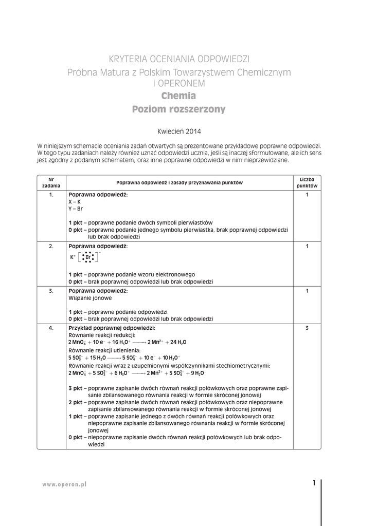 Chemia Poziom rozszerzony KRYTERIA OCENIANIA ODPOWIEDZI