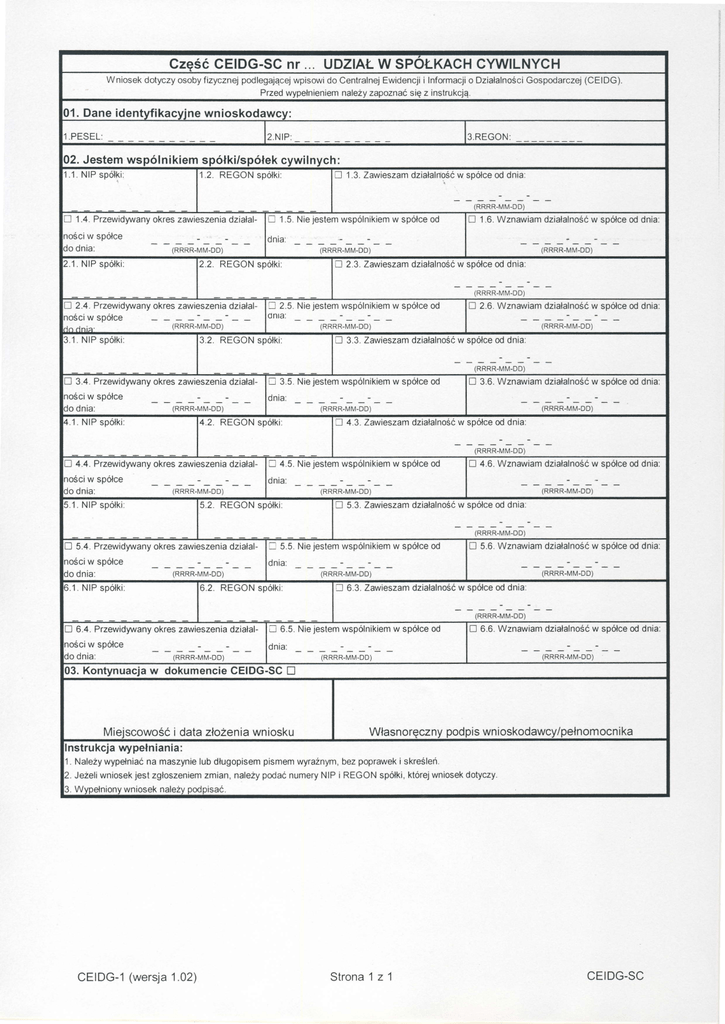 )3. Kontynuacja w dokumencie CEIDG-SC tr