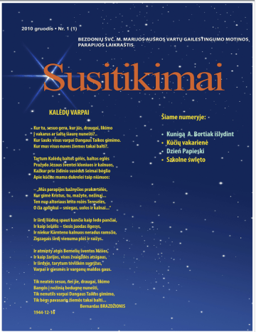 2010 gruodis • Nr. 1 (1) BEZDONIŲ ŠVČ. M. MARIJOS AUŠROS VARTŲ GAILESTINGUMO MOTINOS PARAPIJOS LAIKRAŠTIS Susitikimai KALĖDŲ VARPAI Kur tu, sesuo gera, kur jūs, draugai, likimo Į vakarus ar šaltą šiaurę nunešti?.. Kur šauks visus varpai Dangaus Taikos gimimo. Kur mus visus nuves žiemos takai balti?. Tartum Kalėdų baltos gėlės, baltos eglės Pražydo Jėzaus šventei kloniuos ir kalnuos, Kažkur prie židinio susėdus šeimai bėglio Apie kūčias mama dukrelei taip niūnuos: – „Mūs parapijos bažnyčios prakartėlės, Kur gimė Kristus, tu, mažyte, nežinai... Ten nuo altoriaus krito rožės Teresėlės, O čia aplinkui – sniegas, uolos ir kalnai...“ Ir širdį liūdną spaus kančia kaip ledo pančiai, Ir kaip šešėlis – tiesis juodas ilgesys, Ir niekur Kärnteno kalnuos neradus ramsčio, Zigzagais širdį vienuma plėš ir raižys. Ir atminty atgis Bernelių šventos Mišios, Ir kaip žarijos, visos žvaigždės atsigaus, Ir širdyje, tarytum tėviškėn sugrįžus, Varpai ir giesmės ir vargonų maldos gaus. Tik neateis sesuo, nei jie, draugai, likimo Bangôs į nežinią bedugnę nunešti, Tik nenutils varpai Dangaus Taikos gimimo, Tik bėgs pavasarin žiemôs takai balti... Bernardas BRAZDŽIONIS 1944-12-16 Šiame numeryje: • Kunigą A. Bortiak išlydint • Kūčių vakarienė • Dzień Papieski • Szkolne święto 1 KALĖDOS Kalėdų varpai 2Kalėdas pasitinkant 3 Kunigą Albertą Bortiak išlydint 5 Kūčių vakarienė 6 Gerumo diena 7 Nie bój się tajemnic 9Dziękczynienie 9Dzień Papieski 10Szkolne święto 11Pielgrzymka G R A P H I C D E S I G N F R E E B I E S : V I S I T W W W . D E S I G N F R E E B I E S . O R G TURINYS F O R M O R E Bezdonių parapijos laikraštis Elektroninis paštas: baznycia. [email protected] BEZDONIŲ PARAPIJA junkitės dalyvaukite diskutuokite Kviečiame prisidėti rengiant kitus numerius. 2 Kalėdas pasitinkant Mato evangelijoje pasakyta: „Kur du ar trys susirinkę mano vardu, ten ir aš esu tarp jų" (Mt 18, 20). Bet kad rastųsi galimybė šiam ryšiui, reikia, kad tie du trys turėtų drąsos pasakyti „tebūnie“. Kaip kad Marija ištarė: „tebūna man, kaip tu pasakei” (Lk 1, 38). Adventas tiesiog primygtinai primena mums, kaip svarbu išsiugdyti tokį tikėjimą ir pasitikėjimą, kad į patį netikėčiausią ir avantiūristiškiausią Dievo kvietimą galėtume neabejodami ištarti: „tebūna man, kaip tu pasakei“. Nes ar įmanoma bendrystė ko nors vardan, užvėrus duris tam „kažkam“, atmetus jo kvietimą? Adventinis nuščiuvimas taip pat asocijuojasi su besilaukiančios Marijos nuščiuvimu, su kiekvienos motinos nuščiuvimu, kuris yra natūralus ruošimosi pasitikti ateisiantį etapas, nors tas, kuris ateis, jau yra su savo motina, yra jos dalis... Visos motinos dalį savęs atiduoda pasauliui. Marija atidavė geriausiąją savo dalį – absoliutaus tikėjimo ir pasitikėjimo vaisių, - mūsų visų Išganytoją. Tą, kuris atėjo, kad būtų nukryžiuotas už mus ir dėl mūsų, ir iš meilės mums kaskart vėl būtų tarp mūsų, jei tik mes veiksime jo vardu. Ar mes veikiame, ar susitelkiame jo vardu? Mes skubame vykdyti planus „viršininko vardu“, kurpiame projektus „ES vardu“, planuojame valstybės gerovę „vartojimo vardu“... ir visas mūsų vertimasis per galvą, viršvalandžiai ir savaitgalių darbai išaugo į nesibaigiančią krizę. Nes nė vienoje tų santalkų nėra Dievo. Yra tik mamonos ištroškę dievai – laisvoji rinka, vartojimas, pelnas... Neturėk kitų dievų, tik mane vieną... Jis, Vienatinis, mums ir vėl turi užgimti iš mūsų nuoširdaus ir besąlyginio fiat, „tebūna man, kaip tu pasakei“... Kun. A. Mitkevičius KALĖDOS Kunigą Albertą Bortiak išlydint G R A P H I C D E S I G N F R E E B I E S : V I S I T W W W . D E S I G N F R E E B I E S . O R G 3 M O R E Kūčios ir šv. Kalėdos – vienos didžiausių ir laukiamiausių švenčių. Su jomis susiję daug gražių tradicijų. Apie XX a. vidurį imta puošti ir eglutes. Pirmieji eglučių papuošalai buvo gaminami iš šiaudų bei spalvoto popieriaus. Eglutę puošdavo Kūčių dieną, kuri žymėdavo saulės virsmą, saulėgrįžą, ūkinių metų pabaigą, o krikščioniškame kalendoriuje – Jėzaus Kristaus gimimą. Kūčios – Kalėdų išvakarių apeiginė vakarienė. Žodis kūčia, pasak kalbininko K.Būgos, pasiskolintas iš graikų k. ir juo pirmiausia buvo vadintas tradicinis patiekalas, gaminamas iš įvairių virtų grūdų su aguonų pienu ir medumi. Kiti Kūčių pavadinimą kildina iš žodžio kūtė, reiškiančio patalpą, kurioje gimė kūdikėlis Jėzus. Kūčių dieną tradiciškai laikomasi sauso pasninko. Žmonės ne tik pasninkaudavo, bet ir stengėsi susitaikyti su savo šeimos nariais ir kaimynais. Beveik visoje Lietuvoje būta papročio tą dieną padaryti gerą darbą vargšams. Vienas iš svarbiausių šventos vakarienės patiekalų buvo kūčiukai, kepami ne tik iš kvietinių, bet ir iš ruginių, grikių miltų. Dar vienas būtinas apeiginis patiekalas – kisielius, spanguolinis arba avižų. Žemaičiai Kūčioms iki šių dienų verda cibulynę. Šiaurės Lietuvoje populiarus buvęs pasninko patiekalas žilginis. Grūstuvėje sugrūstos kanapių sėklos užpilamos vandeniu, gerai išmaišomos ir kaitinamos ant ugnies. Užvirus įdedama svogūnų, pasūdoma ir vėl maišoma. Valgoma su šutintomis bulvėmis. Retas aukštaitis Kūčių vakarą apsieina be šutintų kviečių, kuriuos maišo su medumi, ir be barščių su „ausytėmis“ (grybais įdarytais virtinukais). Būtini ir žuvies patiekalai. Iš viso turėdavo būti 12 patiekalų, ir šis skaičius siejamas su 12 apaštalų buvimu arba tuo, kad metai turi 12 mėnesių ir kiekvienam jų skirta po atskirą patiekalą. Kūčių vakarienė paprastai pradedama patekėjus Vakarinei žvaigždei. Susėsdavo visi šeimos nariai, tikėdami, kad tai padės sustiprinti šeimos santarvę. Nep