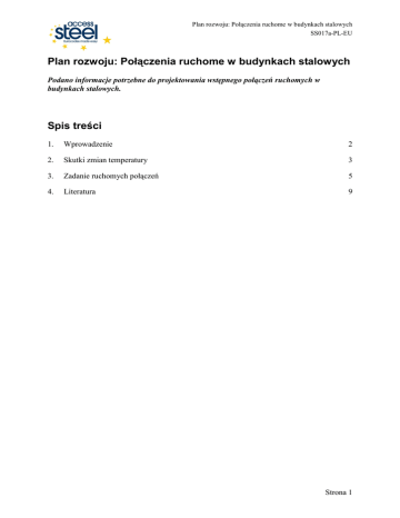 Plan rozwoju: Połączenia ruchome w budynkach stalowych Spis treści