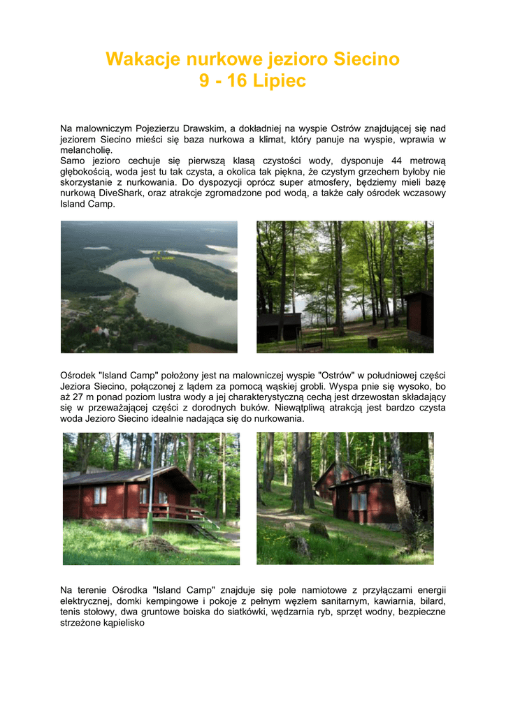 Wakacje nurkowe jezioro Siecino 9 - 16 Lipiec