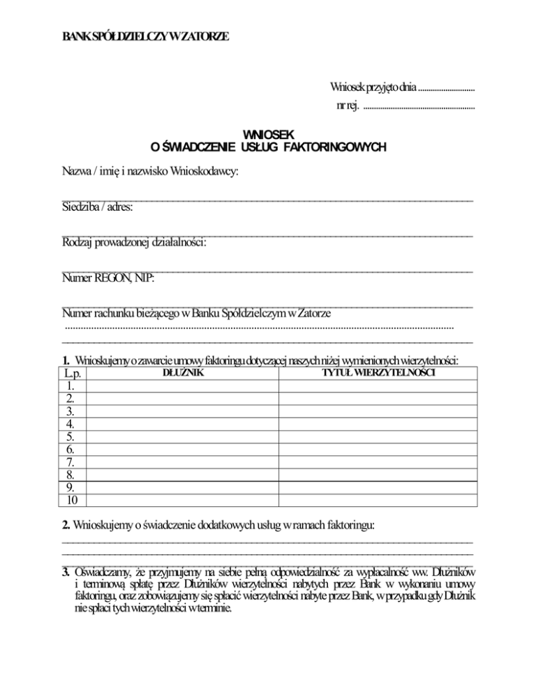 Faktoring - Wniosek - Bank Spółdzielczy w Zatorze
