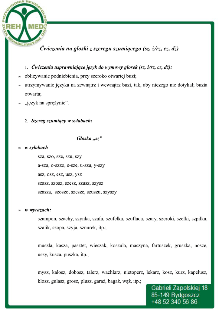 Ćwiczenia na głoski z szeregu szumiącego (sz, ż/rz, cz, dż)