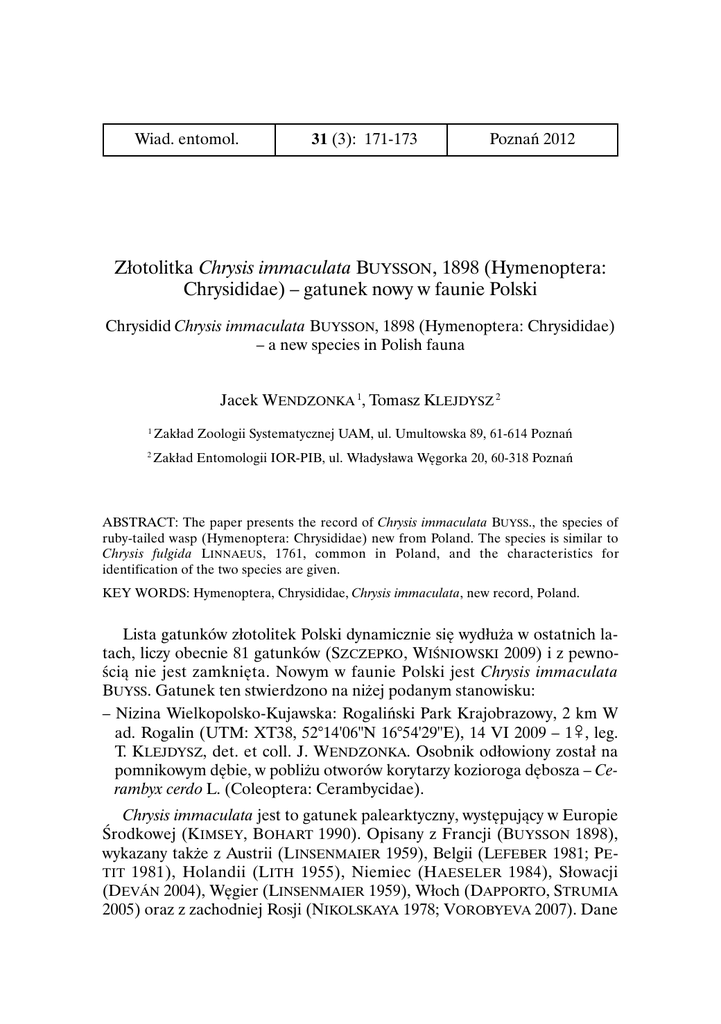 (Hymenoptera: Chrysididae) – gatunek nowy w faunie Polski
