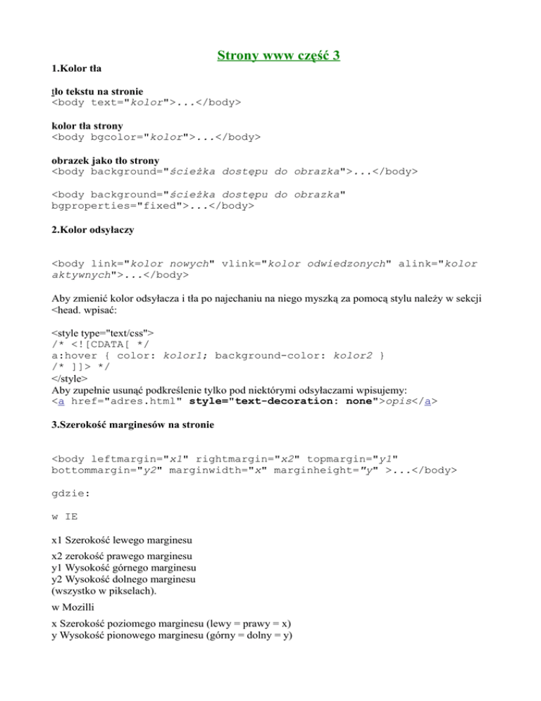 <body link="kolor nowych" vlink="kolor odwiedzonych" alink="kolor