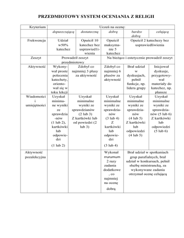 PRZEDMIOTOWY SYSTEM OCENIANIA Z RELIGII