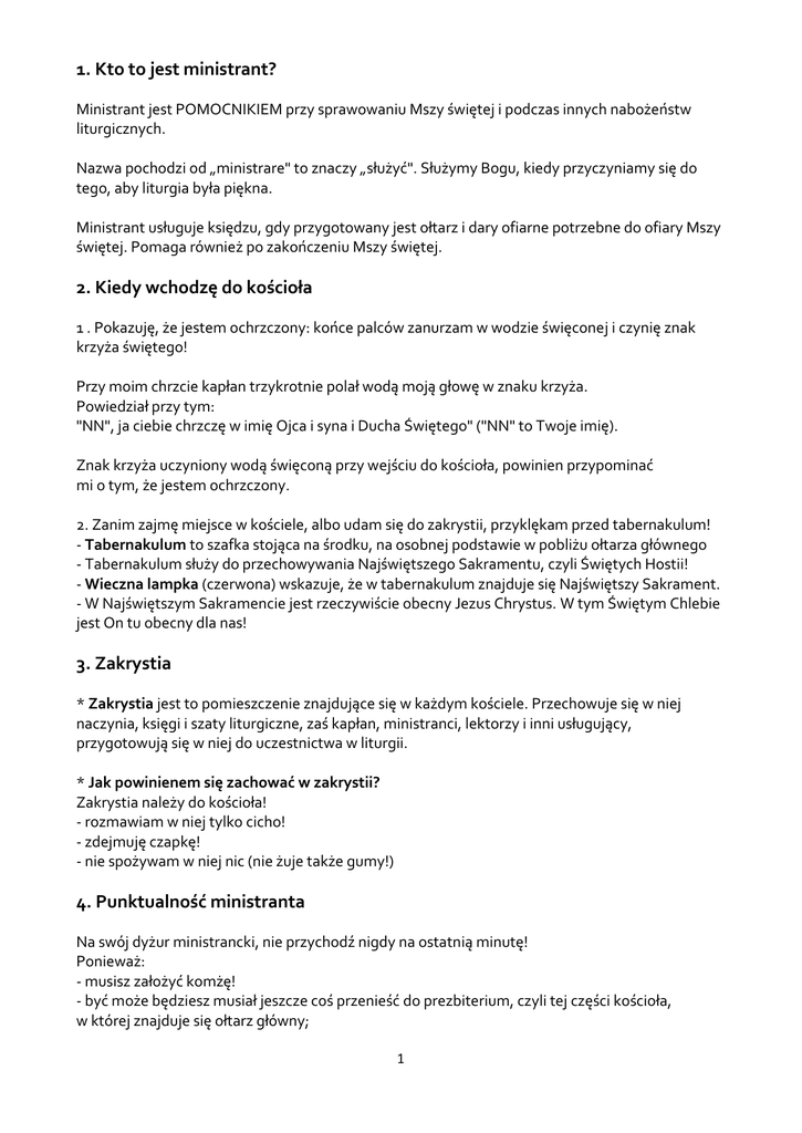 - przybyć 10 MINUT przed rozpoczęciem nabożeństwa i to jest punktualność ministranta!