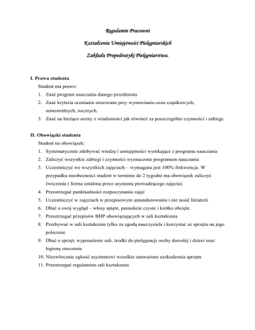 Regulamin Pracowni - Zakład Propedeutyki Pielęgniarstwa
