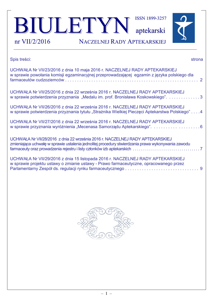 Pobierz BIULETYN aptekarski nr VII/2/2016 NACZELNEJ RADY