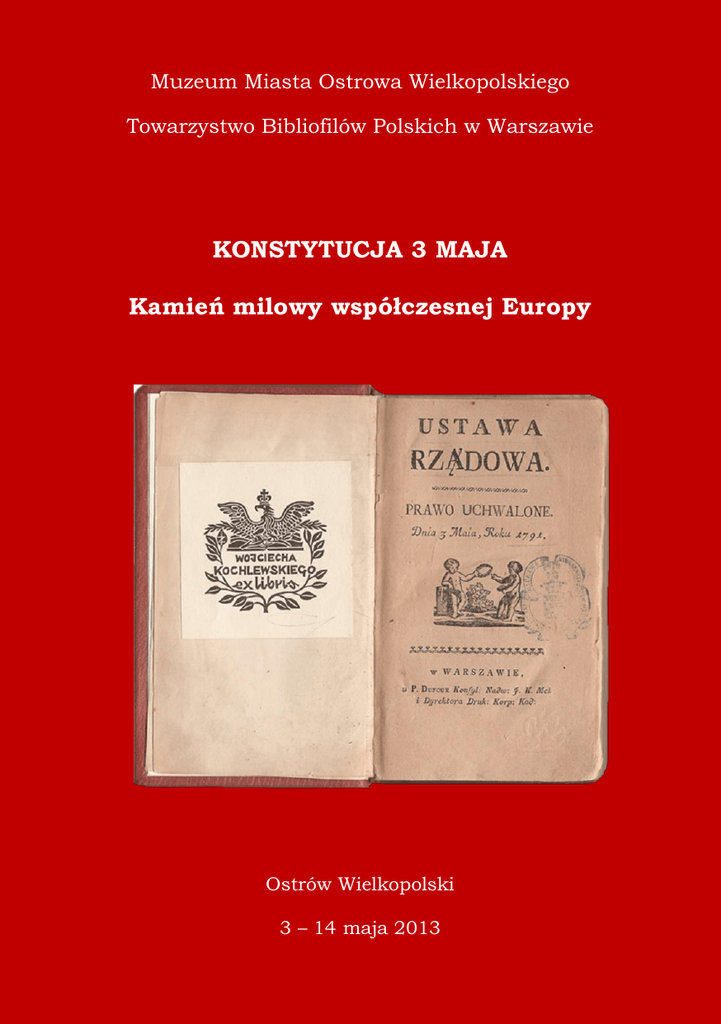 Muzeum Miasta Ostrowa Wielkopolskiego Towarzystwo Bibliofilów Polskich w Warszawie KONSTYTUCJA 3 MAJA Kamień milowy współczesnej Europy Ostrów Wielkopolski 3 – 14 maja 2013 KONSTYTUCJA 3 MAJA Kamień milowy współczesnej Europy wystawa zrealizowana pod patronatem Przewodniczącego Rady Miejskiej Ostrowa Wielkopolskiego oraz Przewodniczącego Rady Powiatu Ostrowskiego Forum Synagoga Ostrów Wielkopolski 3 maja 2013 Ilustracja na okładce: Ustawa Rządowa. Prawo uchwalone. Dnia 3 Maia. Roku 1791. w Warszawie, u P. Dufour Konsyl: Nadw: J. K. Mci i Dyrektora Druk: Korp: Kad: Zbiór najważniejszych praw Sejmu Wielkiego, uchwalonych do 27 czerwca 1791. Ex libris autorstwa Zbigniewa Jóźwika. Zawarte w katalogu cytaty i tytuły eksponowanych obiektów mają oryginalną pisownię i interpunkcję. Zachowaliśmy również tradycyjny zapis Konstytucja 3 Maja za nestorem polskich historyków ustroju i prawa prof. Juliuszem Bardachem autorem wprowadzenia naukowego do wydania Konstytucji 3 Maja 1791, Wydawnictwo Sejmowe 2011. Ustawa Rządowa. Prawo uchwalone Dnia 3 Maja 1791 Roku Fragment preambuły: W IMIĘ BOGA W TRÓJCY ŚWIĘTEJ JEDYNEGO [...] Król Polski, Wielki Książę Litewski, [...] z Stanami Skonfederowanymi [...] Naród Polski reprezentującymi [...] poznawszy [...] rządu naszego wady, a chcąc korzystać z pory, w jakiej się Europa znajduje, i z tej dogorywającej chwili, która nas samych sobie wróciła, wolni od hańbiących obcej przemocy nakazów, ceniąc drożej nad życie, nad szczęśliwość osobistą egzystencję polityczną, niepodległość zewnętrzną i wolność wewnętrzną narodu, którego los w ręce nasze jest powierzony, chcąc [...] na błogosławieństwo, na wdzięczność współczesnych i przyszłych pokoleń zasłużyć, mimo przeszkód, które w nas namiętności sprawować mogą, dla dobra powszechnego, dla ugruntowania wolności, dla ocalenia ojczyzny [...] niniejszą Konstytucję uchwalamy i [...] za świętą, za niewzruszoną deklarujemy, [...] Konstytucję 3 Maja uchwalała jedna warstwa społeczna – rządząca wówczas szlachta. Potrafiła sama, dobrowolnie, bez rozlewu krwi ograniczyć swoje prawa. Znalazła jednocześnie kompromis możliwy do przyjęcia przez prawie wszystkie swe odłamy. Stwarzała podstawę do dalszych reform. Dała Polsce nadzieję i szansę przekształcenia się w państwo sprawiedliwe, silne i rządne – Rzeczpospolitą wszystkich ludzi i narodów w jej granicach żyjących. Zdobyła powszechne uznanie zarówno w kraju jak i w całym cywilizowanym świecie. Dlatego właśnie to ona symbolizuje Wolną Polskę i Wolną Litwę dobrowolnie zjednoczone w Rzeczpospolitą Obojga Narodów. Dlatego to zaborca i renegaci usiłowali wymazać ją z narodowej pamięci a ci, którzy tęsknili za wolną ojczyzną i dążyli do wskrzeszenia Polski, szerzyli jej idee. W XVIII wieku nie udało się, nie udało się też w wieku XIX. Chociaż do rangi symbolu urasta fakt, że wśród członków Komisji Rządzącej podpisujących Ustawę Konstytucyjną Księstwa Warszawskiego byli również ci, którzy w roku 1791 uchwalali Konstytucję 3 Maja. Konstytucja nadana 22 lipca 1807 roku w pałacu królewskim w Dreźnie przez Cesarza Francuzów była nowocześniejsza, w swych rozwiązaniach szła znacznie dalej, tworzyła scentralizowane i nowoczesne państwo. Napoleon oraz konstytucja budziły wielkie nadzieje na wskrzeszenie Polski. Dlaczego więc to Ustawa Rządowa – Konstytucja 3 Maja stała się symbolem tego co w naszym narodzie najlepsze? Ponieważ dzieło Sejmu Wielkiego dało podstawy do budowy nowoczesnego państwa, było pionierskie w Europie dawało nadzieję na przezwyciężenie upadku Rzeczypospolitej. Myśl polityczna i legenda Konstytucji 3 Maja była inspiracją dla kolejnych pokoleń, przetrwała i wydała owoce. Ta myśl polityczna pomogła w 1918, i w 1989 roku. Musimy ją pielęgnować. Jest naszym Dziedzictwem Narodowym. Oryginałami Ustawy Rządowej – Konstytucji 3 MAJA są rękopisy podpisane przez obu marszałków Sejmu [Wielkiego] i Konfederacji oraz członków Deputacji Konstytucyjnej. Znane są dwa egzemplarze, oba znajdują się w zbiorach Archiwum Akt Dawnych w Warszawie. Kilkakrotnie wydawano ich faksymile [na wystawie]. Zaś oficjalnym dokumentem jest pierwodruk odbity z formułami oblaty1 dokonanej 5 maja, wpisany do ksiąg miejskich, a następnie opatrzony suchą pieczęcią i podpisany przez ówczesnego warszawskiego Pisarza Ziemskiego i Grodzkiego Adama Skulskiego. Takich dokumentów znanych jest zaledwie kilka. Różnych wydań Ustawy Rządowej w okresie niespełna piętnastu miesięcy jej obowiązywania – było kilkanaście. Ogólny ich nakład oceniany jest na 20 – 30 tysięcy egzemplarzy. Badaniami pierwodruków Konstytucji 3 Maja zajmował się dr Jerzy Kowecki, jego ustalenia pochodzą z 1971 roku, na nich opierają późniejsze publikacje. Dr Kowecki znalazł i umiejscowił cztery egzemplarze pierwodruku Ustawy Rządowej, w tym dwa podpisane, o randze oficjalnego dokumentu. Jednak druki te różnią się między sobą, odbijane były z dwóch wyraźnie różniących się składów. Do tej pory naliczyłem 19 egzemplarzy wśród nich 4 z podpisem i suchą pieczęcią. Na wystawie są obydwa odbicia – w tym pierwszy – z podpisem Skulskiego i pieczęcią – oficjalny dokument Konstytucji 3 Maja. Jest też osiem różnych wydań z lat 1791-1792. Są one relikwiami narodowymi. Jeden z prezentowanych na wystawie pierwodruków kupiłem w klocku, współoprawny z 72 pierwodrukami innych konstytucji Sejmu Czteroletniego na publicznej aukcji w roku 2004, przy braku zainteresowania jakichkolwiek osób i instytucji, po cenie wywołania za wręcz symboliczną kwotę. 1 oblatowanie - wpisanie do ksiąg [grodzkich i ziemskich], przez co konstytucja uzyskała cechę jawności i ochrony prawnej. Wyróżnia go adnotacja urzędowa zaczynająca się od słów "Actum..." - "Działo się..." W USA, znanych je