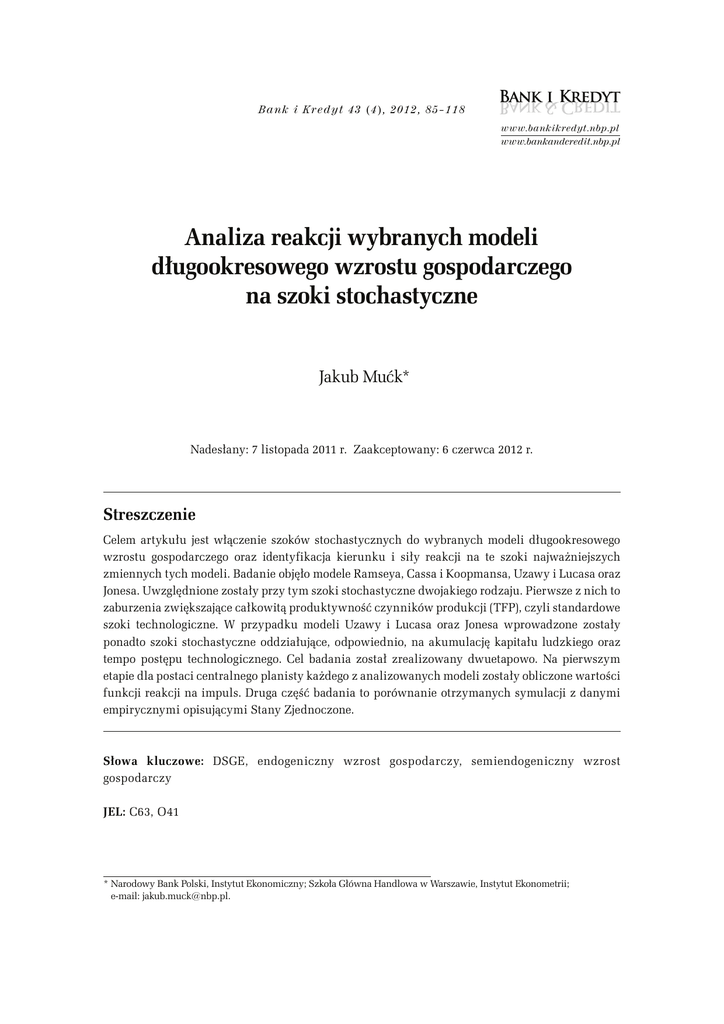 Ba n k i K r ed yt 43 ( 4 ), 2012, 85–118