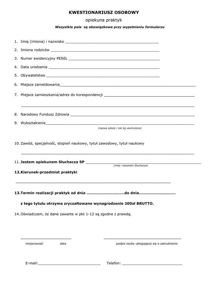 KWESTIONARIUSZ OSOBOWY opiekuna praktyk _