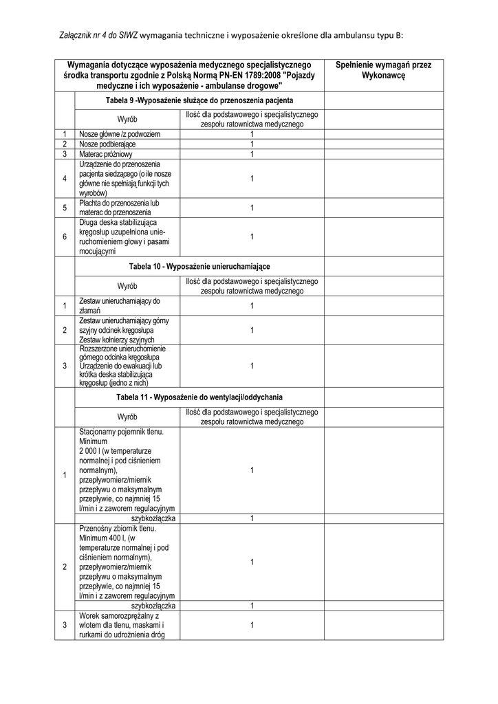 Załącznik nr 4 do SIWZ wymagania techniczne i wyposażenie