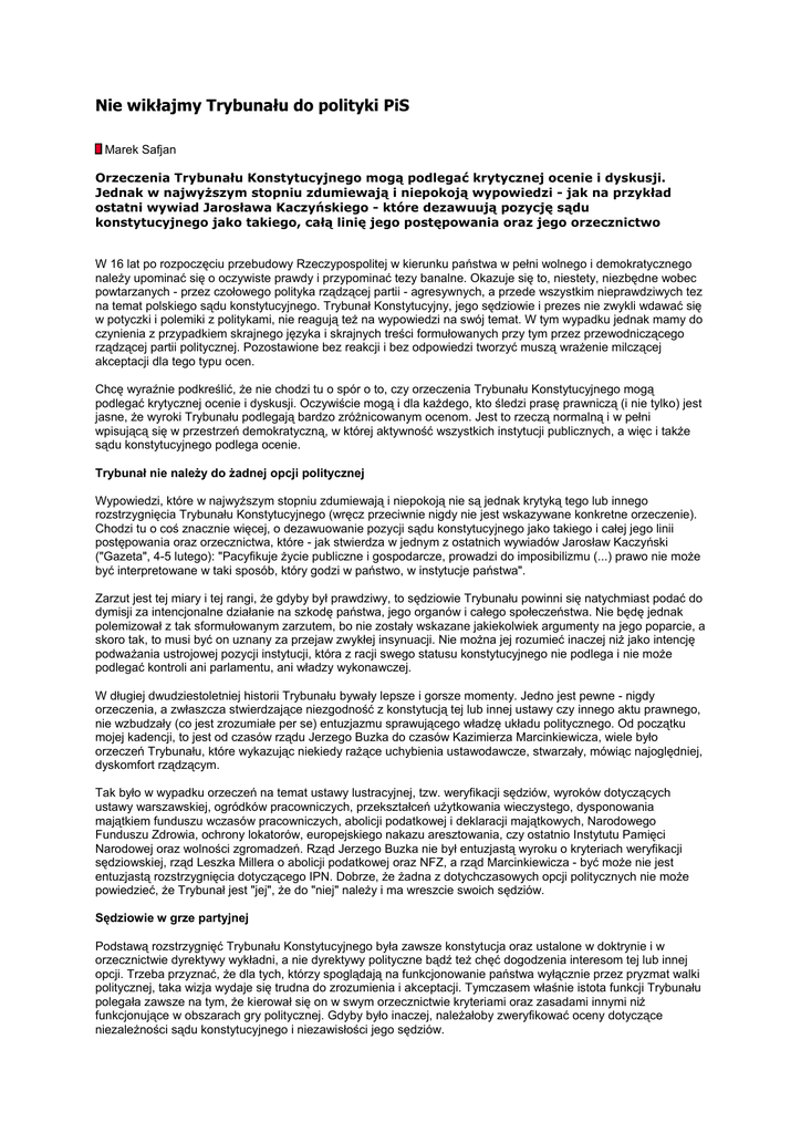 postępowania oraz orzecznictwa, które - jak stwierdza w jednym z ostatnich wywiadów Jarosław Kaczyński