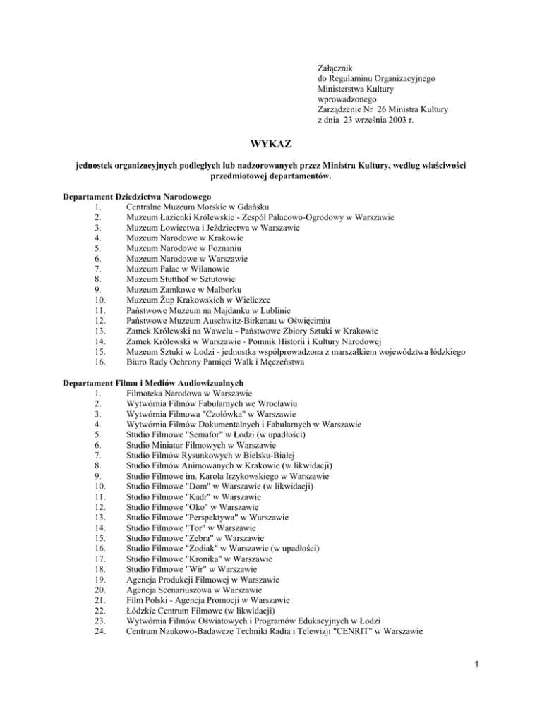 Załącznik do Regulaminu Organizacyjnego Ministerstwa Kultury
