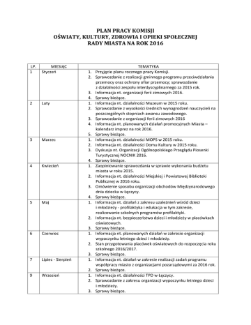 plan pracy komisji oświaty, kultury i opieki społecznej na 2016 rok