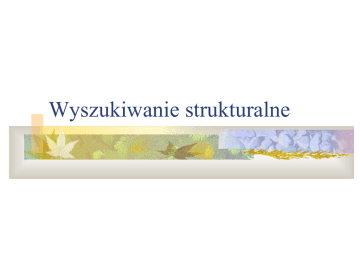 Wyszukiwanie strukturalne Wprowadzenie Wyszukiwanie indeksowe (Wyszukiwanie strukturalne)- podejście tradycyjne Każdy dokument jest opatrzony w opis strukturalny dokumentu (właściwości indeksu / właściwości pliku / właściwości dokumentu), które są określane podczas wprowadzania i indeksowania dokumentów. Przy użyciu funkcji wyszukiwania, dokumenty są wyszukiwane są według danych indeksowych. Ponadto, możliwe jest wyszukiwanie dokumentów według całego tekstu. Poprzez połączenie odpowiednich pozycji wyszukiwania możliwe jest wyszukiwanie złożone według całego tekstu i danych indeksowych dokumentu. Podobieństwo strukturalne Elementem charakterystycznym dokumentów hipertekstowych, odróżniającym go od innych rodzajów dokumentów są odsyłacze. Tworzą one strukturę systemu hipertekstowego. Łącząc dokumenty, równocześnie niosą ze sobą informacje o związkach semantycznych pomiędzy dokumentami. Zakładając, że odsyłacze niosą ze sobą informację o powiązaniach semantycznych między dokumentami, możemy wykorzystać elementy struktury do wyznaczenia podobieństwa pomiędzy dokumentami hipertekstowymi. Przy wyszukiwaniu informacji w sieci wykorzystać można funkcje podobieństwa strukturalnego. Rola odsyłaczy Odsyłacze pełnią w systemie hipertekstowym dwie podstawowe role: reprezentacyjną (ujmując i prezentując relacje między porcjami informacji w tekście) oraz nawigacyjną (obejmując ścieżki poruszania się użytkownika po systemie). Nierzadko te dwie role przenikają się nawzajem, czasem są rozdzielone. Główne typy odsyłaczy Semantyczne (znaczeniowe), czyli bazujące na treści, mające za zadanie wiązać dokumenty mieszczące się w tej samej lub pokrewnej tematyce. Organizacyjne, czyli odsyłające, których głównym celem jest lepsza (szybsza, łatwiejsza) nawigacja po systemie. W związku z tym, bywają one także nazywane nawigacyjnymi. Badania wskazują, że dla hipertekstowego środowiska WWW z dużym prawdopodobieństwem (ponad 80%) można automatycznie rozróżnić odsyłacze nawigacyjne od semantycznych. Założenia funkcji podobieństwa strukturalnego Traktując odsyłacze jako główne źródło informacji o podobieństwie dokumentów, można opracować funkcję podobieństwa strukturalnego (odsyłacze tworzą strukturę systemu hipertekstowego). Założenia przy wyznaczaniu funkcji podobieństwa strukturalnego. W funkcji tej będą uwzględniane: a) Liczba odsyłaczy łączących oba dokumenty (odsyłacze bezpośrednie). b) Liczba wszystkich odsyłaczy, które wychodzą z obu dokumentów. Pozwala to na ważenie odsyłaczy łączących dokumenty. Waga jest większa wtedy, gdy są to jedyne odsyłacze występujące w tych dokumentach; mniejsza - gdy są one jednymi z wielu. c) Liczba i rodzaj bezpośrednich wspólnych potomków i przodków (w ramach kolekcji i poza nią). d) Rodzaj odsyłaczy według podziału na semantyczne i nawigacyjne przyjmując, że odsyłacze semantyczne lepiej niż nawigacyjne odzwierciedlają podobieństwo tematyczne między dokumentami. Załóżmy także, że zbiorem wartości funkcji podobieństwa jest przedział [0,1]. Wyszukiwanie strukturalne w sieci Sieć i ogrom zawartych w niej informacji stwarza nowe wyzwanie dla sposobów wyszukiwania informacji. Wyszukiwanie z użyciem słów kluczowych zapewniło do nich dostęp. Hiperłącza tworzone przez autorów stron www przedstawiają relacje pomiędzy źródłowymi a docelowymi stronami co dowodzi istnienia struktury hiperłączy pomiędzy stronami w Internecie. Silniki wyszukujące w sieci szukają nie tylko słów kluczowych na stronach lecz także struktury hiperłączy pomiędzy nimi. Rezultaty wyszukiwania z użyciem tej struktury wypadają korzystnie w porównaniu z wyszukiwaniem z użyciem baz słów kluczowych. Pojęcie Wyszukiwanie strukturalne w sieci - jest procesem przeszukiwania sieci w poszukiwaniu specyficznej struktury hiperłączy i połączone z tekstową analizą zawartości strony. Niekiedy do odnalezienia dużej ilości potencjalnie relewantnych stron nie wystarczają jedynie metody działające w oparciu o czysty tekst. Ludzie chętnie surfują po sieci używając jej graficznej struktury. Aktualnie silniki wyszukujące mogą być używane w celu szukania niektórych słów kluczowych lub ich kombinacji bez narzucania jakiejkolwiek struktury łącz pomiędzy stronami. Innymi słowy wyniki uzyskane przez poszczególne silniki mogą być liczbą trafień z których każde zawiera jedną stronę. W odniesieniu do wyników wyszukiwania strukturalnego silnik jest liczbą diagramów hiperłączy gdzie każdy węzeł reprezentuje stronę zawierającą słowa kluczowe a krawędzie - hiperłącza pomiędzy stronami. Silnik zapewnia że te strukturalne trafienia pasują do strukturalnych zapytań użytkownika. Przykład: Rysunek 1 pokazuje proste zapytanie strukturalne w którym użytkownik szuka strony o temacie ”informatyka” wskazującej na stronę o temacie „osiągnięcia naukowe”. Wynik wyszukiwania strukturalnego dla takiego zapytania mógłby być tym samym grafem lub strukturą hiperłączy którą użytkownik wprowadził jako dane wejściowe z wyjątkiem tego, że to już zawiera strony które odpowiadają nie tylko czystemu wyszukiwaniu po słowach kluczowych w silnikach opartych na tekście ale także strukturze hiperłączy pomiędzy nimi. Przykład zapytania strukturalnego Informatyka Osiągnięcia naukowe Klasteryzacja (clustering) Związana jest z pojęciem wyszukiwania strukturalnego. Jest to wyznaczanie podobieństw w zbiorze obiektów. Znajduje ono zastosowanie w wyszukiwaniu informacji w Internecie. Silniki wyszukujące oparte o wyszukiwanie słów kluczowych zwracają tysiące linków lecz bez wyjaśnienia tych rezultatów. Pojawia się potrzeba jakiegoś usystematyzowania tych wyników. Search Results Clustering ( SRC )– to efektywna identyfikacja znaczących, tematycznych grup dokumentów w wy