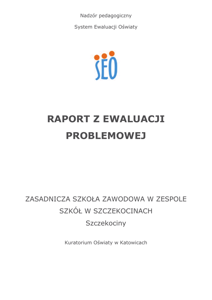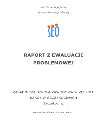Nadzór pedagogiczny System Ewaluacji Oświaty RAPORT Z EWALUACJI PROBLEMOWEJ ZASADNICZA SZKOŁA ZAWODOWA W ZESPOLE SZKÓŁ W SZCZEKOCINACH Szczekociny Kuratorium Oświaty w Katowicach Wstęp Prezentowany raport jest rezultatem ewaluacji zewnętrznej przeprowadzonej w szkole przez wizytatorów do spraw ewaluacji. Ewaluacja zewnętrzna polega na zbieraniu i analizowaniu informacji na temat funkcjonowania szkoły w obszarach wyznaczonych przez wymagania państwa: 1. Szkoła lub placówka realizuje koncepcję pracy ukierunkowaną na rozwój uczniów. 2. Procesy edukacyjne są zorganizowane w sposób sprzyjający uczeniu się. 3. Uczniowie nabywają wiadomości i umiejętności określone w podstawie programowej. 4. Uczniowie są aktywni. 5. Kształtowane są postawy i respektowane normy społeczne. 6. Szkoła lub placówka wspomaga rozwój uczniów, z uwzględnieniem ich indywidualnej sytuacji. 7. Nauczyciele współpracują w planowaniu i realizowaniu procesów edukacyjnych. 8. Promowana jest wartość edukacji. 9. Rodzice są partnerami szkoły lub placówki. 10. Wykorzystywane są zasoby szkoły lub placówki oraz środowiska lokalnego na rzecz wzajemnego rozwoju. 11. Szkoła lub placówka, organizując procesy edukacyjne, uwzględnia wnioski z analizy wyników sprawdzianu, egzaminu gimnazjalnego, egzaminu maturalnego, egzaminu potwierdzającego kwalifikacje zawodowe i egzaminu potwierdzającego kwalifikacje w zawodzie oraz innych badań zewnętrznych i wewnętrznych. 12. Zarządzanie szkołą lub placówką służy jej rozwojowi. Ewaluacja ma także na celu ustalenie, czy szkoła spełnia badane wymagania zawarte w rozporządzeniu Ministra Edukacji Narodowej z dnia 6.08.2015 r. Szkoła może spełniać wymagania na poziomie podstawowym i podejmować działania z wysokiego poziomu wymagania. ZASADNICZA SZKOŁA ZAWODOWA W ZESPOLE SZKÓŁ W SZCZEKOCINACH 2/22 Opis metodologii Badanie zostało zrealizowane w dniach 19-10-2015 - 23-10-2015 przez zespół wizytatorów ds. ewaluacji, w skład którego weszli: Kazimierz Horbatowski, Maria Utracka. Badaniem objęto 48 uczniów (ankieta), 15 nauczycieli (ankieta i wywiad grupowy).Przeprowadzono wywiad indywidualny z dyrektorem placówki a także obserwacje lekcji, placówki i analizę dokumentacji. Na podstawie zebranych danych został sporządzony raport, który obejmuje podstawowe obszary działania szkoły lub placówki. Wyjaśnienie skrótów dla narzędzi: OZ - Akusz obserwacji zajęć AD - Kwestionariusz ankiety dla dyrektora/dyrektorki szkoły AN - Kwestionariusz ankiety dla nauczycieli AMS - Kwestionariusz ankiety dla uczniów "Moja szkoła" APW - Kwestionariusz ankiety poewaluacyjnej dla wizytatora ADZ - Kwestionariusz badania "Analiza danych zastanych" WN - Scenariusz wywiadu grupowego z nauczycielami WD - Scenariusz wywiadu z dyrektorem/dyrektorką szkoły WNPO - Scenariusz wywiadu z nauczycielem po obserwacji WNO - Scenariusz wywiadu z zespołem nauczycieli uczących w jednym oddziale ZASADNICZA SZKOŁA ZAWODOWA W ZESPOLE SZKÓŁ W SZCZEKOCINACH 3/22 Obraz placówki Zasadnicza Szkoła Zawodowa funkcjonuje w Zespole Szkół w Szczekocinach od 1977 roku. Ma bogatą tradycję i wykształciła wielu absolwentów, którzy odnajdują się na rynku pracy. W ciągu prawie 40 lat jej funkcjonowania zmieniały się kierunki kształcenia. Obecnie Zasadnicza Szkoła Zawodowa kształci uczniów w wielu zawodach (w klasach wielozawodowych), zgodnie z ich zainteresowaniami, a także zapotrzebowaniem zakładów pracy działających w środowisku lokalnym oraz priorytetami rynku krajowego. Kształcenie zawodowe odbywa się u pracodawców i w Powiatowym Centrum Kształcenia Zawodowego. Szkoła współpracuje ze sprawdzonymi pracodawcami, dającymi gwarancję dobrego przygotowania uczniów do egzaminu zawodowego i przyszłej pracy. Dzięki temu oraz działaniom edukacyjnym dobrze wykształconej i doświadczonej kadry pedagogicznej, uczniowie osiągają bardzo dobre wyniki na egzaminie zawodowym. Uczniowie mają możliwość rozwijania swoich zainteresowań oraz zdobywania nowych umiejętności poprzez uczestnictwo w zajęciach pozalekcyjnych. Największą popularnością cieszą się zajęcia sportowe. Udział w nich pozwala uczniom osiągać sukcesy na zawodach sportowych, co wpływa na poprawę ich samooceny. Atutem szkoły jest jej kameralna atmosfera sprzyjająca nauce i wychowaniu. W szkole liczącej około 200 uczniów i działającej w małym środowisku łatwiej jest rozpoznać potrzeby uczniów i zapewnić indywidualne podejście do każdego z nich. Zespół Szkół w Szczekocinach jest szkołą bezpieczną, w której panuje dobra atmosfera, sprzyjająca edukacji i wychowaniu. ZASADNICZA SZKOŁA ZAWODOWA W ZESPOLE SZKÓŁ W SZCZEKOCINACH 4/22 Informacja o placówce Nazwa placówki ZASADNICZA SZKOŁA ZAWODOWA W ZESPOLE SZKÓŁ W SZCZEKOCINACH Patron Typ placówki Zasadnicza szkoła zawodowa Miejscowość Szczekociny Ulica SPACEROWA Numer 12 Kod pocztowy 42-445 Urząd pocztowy SZCZEKOCINY Telefon 0343557476 Fax 0343557476 Www zs-szczekociny.edu.pl Regon 00065412100000 Publiczność publiczna Kategoria uczniów Dzieci lub młodzież Charakter brak specyfiki Uczniowie, wychow., słuchacze 69 Oddziały 3 Nauczyciele pełnozatrudnieni 0.00 Nauczyciele niepełnozat. (stos.pracy) 17.00 Nauczyciele niepełnozat._(w etatach) 3.00 Średnia liczba uczących się w oddziale 23 Liczba uczniów przypadających na jednego pełnozatrudnionego nauczyciela Województwo ŚLĄSKIE Powiat zawierciański Gmina Szczekociny Typ gminy gmina miejsko-wiejska ZASADNICZA SZKOŁA ZAWODOWA W ZESPOLE SZKÓŁ W SZCZEKOCINACH 5/22 Obszary badawcze umożliwiające opisanie działań szkoły w zakresie wymagań Uczniowie nabywają wiadomości i umiejętności określone w podstawie programowej Poziom podstawowy: W szkole lub placówce realizuje się podstawę programową uwzględniając osiągnięcia uczniów z poprzedniego etapu edukacyjnego. Uczniowie nabywają wiadomości i umi