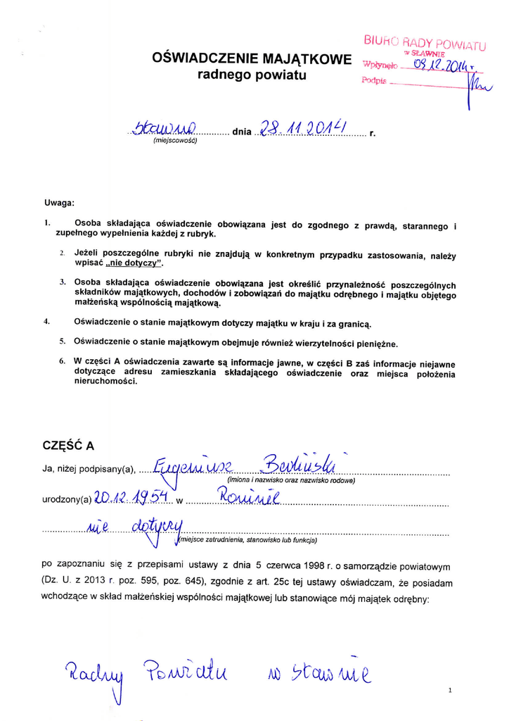 3. Osoba skladajaca oswiadczenie obowia_zana jest okreslic przynaleznosc poszczegolnych