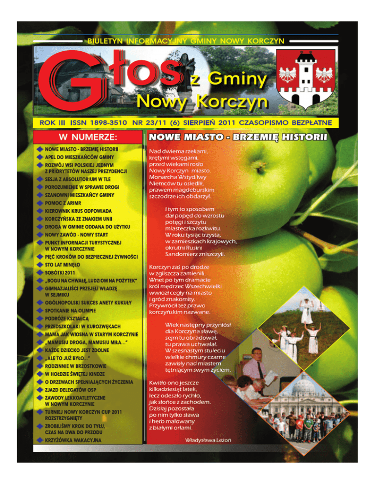 Apel do Mieszkańców Gminy Nowy Korczyn! W związku z działaniami Gminnego Zespołu Zarządzania Kryzysowego, zmierzającymi do należytego przygotowania się na wypadek wystąpienia zagrożenia powodziowego lub powodzi na terenie Gminy Nowy Korczyn, prosimy o zgłaszanie się właścicieli działek, na których znajdują się duże złoża piasku, celem zawarcia stosownych porozumień pomiędzy gminą a właścicielem, na możliwość odpłatnego pozyskiwania piasku ze wskazanych złóż. Gmina zabezpiecza środki transportu i sprzęt załadowczy we własnym zakresie. Więcej informacji pod nr tel. 41 377 10 03 – z Posłem do Parlamentu Europejskiego Czesławem Siekierskim rozmawiała Anna Nowak 1 lipca br. Polska objęła prezydencję w Unii Europejskiej. Na czym polega ta funkcja i z jakimi obowiązkami się wiąże? Prezydencja, a ściślej mówiąc Przewodnictwo w Radzie Unii Europejskiej, czyli jednym z organów decyzyjnych UE, dawniej zwanym „Radą Ministrów Unii Europejskiej”, jest okresem, w którym kolejne kraje wchodzące w skład Wspólnoty, na okres sześciu miesięcy przewodniczą posiedzeniom Rady UE, czyli spotkaniom ministrów 27 krajów członkowskich odpowiedzialnych za różne obszary, np. minister finansów, przemysłu i rolnictwa itd. Państwo sprawujące prezydencję przejmuje wówczas odpowiedzialność za porządek obrad Rady UE i przewodzi jej posiedzeniom. Kieruje podejmowaniem decyzji politycznych i legislacyjnych oraz, co szczególnie ważne, wypracowuje kompromisy pomiędzy poszczególnymi państwami członkowskimi. Ponadto pełni funkcje reprezentacyjne, uczestniczy w plenarnych posiedzeniach PE, wydaje deklaracje w imieniu Rady oraz bierze udział w posiedzeniach komisji Parlamentu Europejskiego. Reprezentacja zewnętrzna obejmuje natomiast m.in. udział w konferencjach międzynarodowych. Kto na najwyższym szczeblu zajmuje się reprezentacją w ra2 mach prezydencji - premier czy prezydent? Reprezentacją w ramach prezydencji w Radzie Europejskiej, tak zwanych Spotkaniach Szczytu Europejskiego, z udziałem premierów bądź prezydentów państw, z naszej strony uczestniczy Prezes Rady Ministrów, natomiast Prezydent RP uczestniczy w posiedzeniach szczytu NATO. Prezydent też planuje złożyć wizytę w instytucjach Unii w czasie naszej prezydencji. Od wejścia w życie Traktatu z Lizbony Radzie Europejskiej przewodzi stały przewodniczący, obecnie na pierwszą połowę kadencji, to znaczy do grudnia 2011 jest to Herman van Ronpuy. Wiele osób myli ze sobą Radę Europejską z Radą Unii Europejskiej. Mianem Rady Europejskiej określa się tzw. Szczyt UE. Ma ona za zadanie wyznaczanie ogólnych kierunków rozwoju Unii i jej priorytetów politycznych. Rada Unii Europejskiej natomiast, jak już wcześniej wspomniałem, to organ decyzyjny UE, kiedy spotykają się odpowiedni ministrowie 27 krajów. Czy w związku z pełnieniem prezydencji Polska będzie miała większe możliwości wpływania na „bieg spraw europejskich?” Odpowiedź na to pytanie jest złożona. Z jednej strony, dzięki prezydencji Polska ma większe szanse na przedstawienie na forum UE priorytetów politycznych, na wyznaczenie najważniejszych obszarów działań i na przekazanie własnych pomysłów rozwoju. Z drugiej zaś Polska ma również obowiązek kontynuowania prac przedsięwziętych jeszcze przed objęciem prezydencji, realizowania tych, które są przewidziane na czas naszego przewodnictwa, zagwarantowania dobrego funkcjonowania instytucji i zapewnienia Unii ważnego miejsca w świecie. Czy jako kraj przewodniczący Radzie UE możemy wywalczyć coś dla polskich rolników? Jaki będziemy mieć wpływ na decyzje podejmowane w sprawach reformy Wspólnej Polityki Rolnej? Rolnictwo i rozwój wsi jest jednym z priorytetów polskiej prezydencji. Musimy starać się wywalczyć jak najwięcej w celu rozwoju polskiej wsi i rolnictwa. Kwestią bardzo trudną jest na przykład wyrównanie wysokości dopłat dla rolników w UE. Powinniśmy uprościć Wspólną Politykę Rolną, modernizować obszary rolne, wprowadzać nowe rozwiązania, poprawiające funkcjonowanie wsi i rolnictwa. Mamy duży wpływ na decyzje podejmowane w ramach reformy WPR. Parlament ma prawo współdecyzji obok Rady Unii Europejskiej, spotkania ministrów rolnictwa 27 krajów członkowskich. Wiele będzie zależało od wielkości budżetu UE, o którym głównie decyduje Szczyt Europejski - Rada Europejska. Co się dzieje w Polsce w związku z prezydencją? Czy przeciętny obywatel w ogóle to zauważa? Przeciętny Kowalski z pewnością zauważył fakt przejęcia na Głos z Gminy Nowy Korczyn okres sześciu miesięcy prezydencji w Radzie UE przez Polskę. Od dłuższego czasu w mediach trwa kampania informująca o tym przedsięwzięciu. Ponadto organizowanych jest ponad tysiąc trzysta wydarzeń kulturalnych, zarówno w kraju, jak i zagranicą, mających na celu przybliżenie tego ważnego wydarzenia i promocję polskich regionów. Także i w naszych małych ojczyznach będą odbywały się różne wydarzenia, spotkania czy imprezy kulturalne związane z naszym przewodnictwem w Unii. W maju minęło 7 lat od akcesji. Czy Polska ma wpływ na ważne decyzje instytucji Unii, np. przy obsadzie kluczowych stanowisk? Oczywiście, Polska ma wpływ na podejmowanie istotnych decyzji dotyczących Wspólnoty, szczególnie teraz, podczas sprawowania Przewodnictwa w Radzie Unii Europejskiej, dlatego będzie je proponować. Prowadzenie mediacji i gwarancja jak najlepszych dla Europy kompromisów jest tego dobitnym przykładem. Jednak wkład Rzeczypospolitej w podejmowanie decyzji odnośnie obsadzania kluczowych stanowisk w instytucjach unijnych jest podobny jak wkład innych państw członkowskich, tu obowiązują określone klucze podziałowe. Polska jako równorzędny członek Unii Europejskiej ma takie same prawa jak inne kraje UE, co jest podstawą, fundamentem istnienia Wspólnoty. Dziękuję za rozmowę. Anna Nowak S