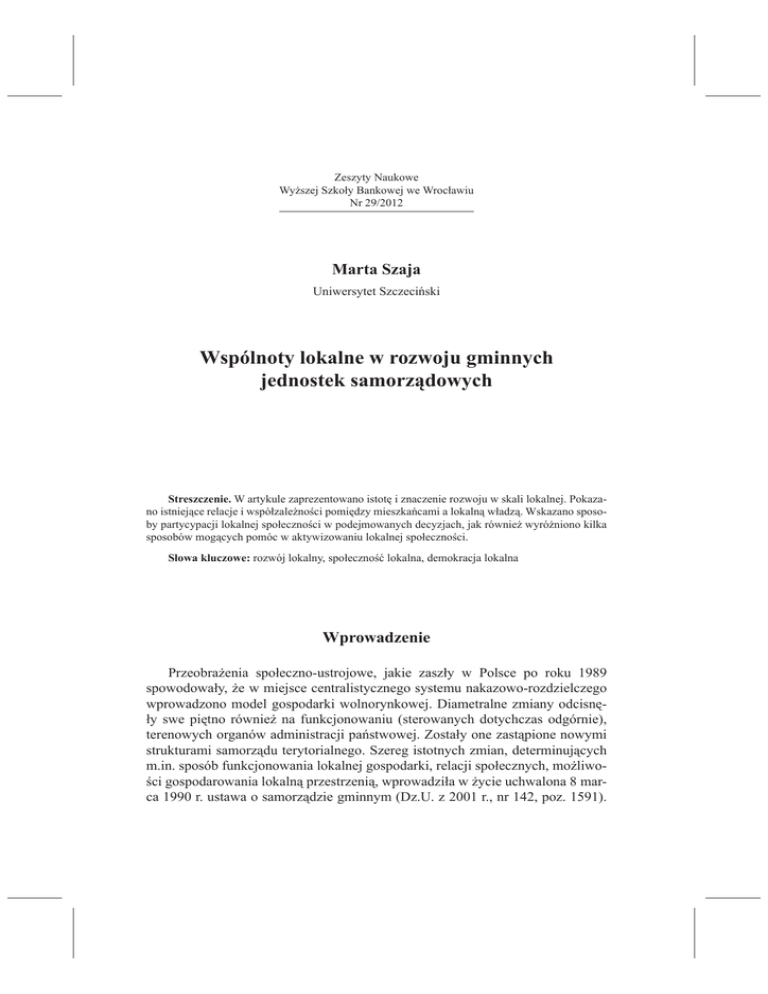 Wspólnoty lokalne w rozwoju gminnych jednostek samorządowych