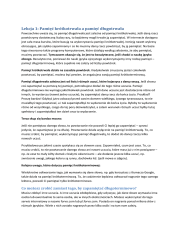 Lekcja 1: Pamięć krótkotrwała a pamięć długotrwała