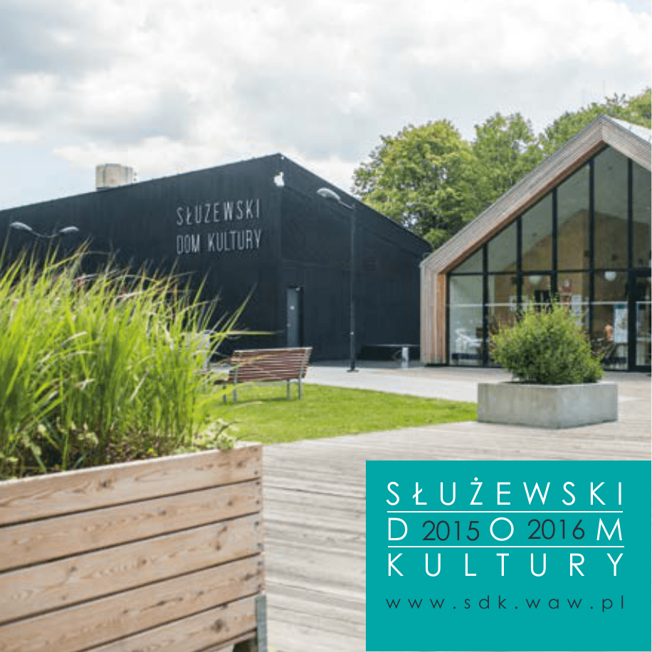SŁUŻEWSKI D 2015 O 2016 M K U L T U R Y w w w . s d k . w a w . p l K U L T & E K O W W A R U L S O Z R G A W A I A I E Służewski Dom Kultury to jedyny taki dom na mapie stolicy – miejsce zachęcające bogatą ofertą kulturalną, artystyczną i edukacyjną, ale także miejsce, w którym ważne są idee ekologii i troski o otoczający świat. Zaczynaliśmy w 1991 roku. Na Służewie powstało wówczas stowarzyszenie, które chciało zrobić coś dla lokalnej społeczności. Stworzyć przestrzeń, w której każdy znajdzie coś dla siebie, a służewscy artyści będą mogli rozwijać się i prezentować swoją twórczość. Wywalczyliśmy teren przy Bacha 15 a dokładnie baraki dawnej stołówki, które zostały tu po budowniczych metra i były przeznaczone do rozbiórki. Od tego czasu przebyliśmy daleką drogę. Dziś po barakach nie ma śladu. Doczekaliśmy się siedziby na miarę XXI wieku, domu kultury zbudowanego na wzór dawnych, służewskich siedlisk – z ogrodem warzywnym, ulami i zagrodą dla kóz, miejsca idealnie wpisującego się w krajobraz Służewa nad Dolinką (tę wyjątkowość budynków ze szkła i drewna docenili eksperci przyznając nam Nagrodę Architektoniczną POLITYKI 2013). Z A G R O D A Z K O Z A M I • op ieku n z w i er z ą t : B ogd a n Z i el i ń ski Kozy towarzyszą Służewskiemu Domowi Kultury od lat. Ich zagródka to miejsce, gdzie można z bliska przyjrzeć się jak żyją i jakie mają zwyczaje, a także pomóc w dokarmianiu. W S P Ó L N Y O G R Ó D • koord y n a t or ka : Pa u l i n a Jez i orek • tel. 790 025 145, ogrod @sd k. w aw. p l To pracownia ogrodnicza, ogródek edukacyjno-społeczny. Uprawiamy tu warzywa, owoce i zioła. W naszych uprawach nie korzystamy ze środków chemicznych. Na zajęciach przyglądamy się naturze, poznajemy ekosystemy otoczenia i uczymy jak opiekować się roślinnością ogrodową. Odbywają się tu zajęcia dla dzieci oraz warsztaty i imprezy integrujące dla wszystkich. P S Z C Z E L A R I U M • p rowad z ą c y : Ka m i l B a j • kon ta kt : t el . 609 475 750 • p szczel a r i u m @sd k. w aw. p l Chcielibyście spróbować miodu z własnej pasieki? Dajemy Wam taką możliwość! W naszym pszczelarium dowiecie się wszystkiego o życiu tych niezwykle pożytecznych owadów oraz poznacie tajemnice produkcji miodu. Wszystko pod okiem doświadczonych pszczelarzy. G A L E R I A „ P R Z Y K O Z A C H” • koord y n a t or ka : B a r b a r a C zeka ń ska • kon ta kt : c zeka n ska @sd k. w aw. p l Galeria „Przy Kozach” istnieje w Służewskim Domu Kultury od zawsze. To miejsce, gdzie odbywają się wspaniałe wystawy, gdzie obejrzycie dzieła zarówno artystów służewskich, jak i tych z całej Warszawy, Polski, a nawet ze świata. Galeria oferuje lekcje sztuki adresowane do uczniów szkół podstawowych wszystkich klas. J A Z Z D O B R Y N A D D O L I N K Ą • koord y n a t or : Jer z y Sz c zer b a kow • kon ta kt : e- m a i l : sz c zer b a kow @sd k. w aw. p l • tel. 601 276 365 Jazz to muzyka wolności - ale tej wymagającej od wykonawców najwyższego kunsztu wykonawczego, ogromnej wiedzy i muzycznej erudycji. W ramach cyklu “Jazz dobry nad Dolinką” będziemy prezentować Państwu gwiazdy poruszające nurt jazzu otwartego, komunikatywnego, wykonywanego z mistrzowską wirtuozerią. Cykl “Młode wilki” to koncerty młodych zespołów, na które już teraz warto zwrócić uwagę. Adresujemy je do wszystkich wrażliwych na muzyczne i artystyczne doznania, nie tylko do znawców. Kierunki jazzu jakie planujemy z Państwem penetrować nie wymagają od słuchacza niczego więcej prócz otwartości na sztukę. M A Ł A • • • • • • A K A D E M I A M U Z Y K I wtore k ( 1 r a z / m i es. ) tr zy au d y c j e: g. 10. 00, 11. 00, 12. 00 sala ta n ec z n a / a u d y c j e b ez p ł a t n e gosp od a r z kon c er t u : I gor P r zeb i n d ow ski koord y n a t or : J a c ek Z i el i ń ki tel. 605 033 635, e- m a i l : j . z i el i n ski @sd k. w aw. p l Seria interaktywnych koncertów dla dzieci, podczas których wyruszamy w muzyczną podróż przez kontynenty. Wspólnym łącznikiem tej wyprawy jest jazz, czyli muzyka improwizowana. • Progra m a u d y c j i n a rok 2015: 1. “Ba sy w y gi b a sy ” / p a ź d z i er n i k goś ć : Woj t ek Kr ól - b a ss / el ekt r y c z ny kon t r a b a s 2. “Pr zeb oj owe c on gi ” / l i st op a d goś ć : Da n i el Woj sa - śp i ew / p er ku sj on a l i a 3. “Kol ęd y p od c h oi n ką ” / gr u d z i eń goś ć : Ni ka L u b ow i c z - śp i ew ZAJĘCIA OGÓLNOROZWOJOWE WARSZTATY TEATRALNE CERAMIKA 7-13 LAT WARSZTATY TEATRALNE WARSZTATY PLASTYCZNE HIP HOP CLAN 3-6 LAT Z A J Ę C I A I M Ł O HIP-HOP KIDS RODZINNE D L A D Z 7-10 LAT HIP HOP AKADEMIA 11-15 LAT FOTO 10+ GITARA KLASYCZNA OBIEŻYŚWIAT D Z I E C I I E Ż Y 6-13 LAT PLASTYKA/MULTIMEDIA Z A J Ę C I A O G Ó L N O R O Z W O J O W E 2 - 3 L A T A • • • • • • • • I g r u p a d o 2 , 5 ro k u - g . 9 .3 0 -1 0 .15 II g r u p a d o 2 , 5 ro k u - g .1 0 .3 0 -1 1 .15 III g ru p a p ow yże j 2 ,5 ro k u - g . 1 1.30- 12.00 w t o re k , c z w a r te k a nt re s o l a n a d s a lą plas tyczną / cen a:100 zł/m ies. prow a d z i : K a m ila Calińs k a zapi s y i re k r utacja: Kamila Ca lińska t el. 6 0 6 4 0 1 6 1 0 , k a milacalins k a @sd k.waw.p l To oferta przeznaczona dla maluszków, które dopiero przygotowują się do pójścia do przedszkola. Na zajęciach dzieci uczą się funkcjonowania w grupie. Mają też okazję spotkania się z rówieśnikami i przyswajania zasad wspólnej zabawy. C • • • • • E R A M I K A 7 - 1 3 L A T śro d a g . 1 7 . 0 0-1 8 .3 5 sa la p l a s t yc z n a / ce na:1 2 0 zł/mies. prow a d z i Jo a nna Ejs mo nt zapi s y i re k r utacja: Jo a nna Ejs mon t t el. 6 6 3 1 5 5 2 4 1 , ce ramik a @ s dk .waw.p l Praca z gliną uczy cierpliwości, pozwala też na wyciszenie się i koncentrację. Dzieci