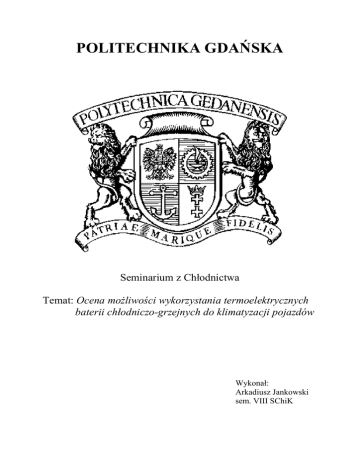 POLITECHNIKA GDAŃSKA Seminarium z Chłodnictwa Temat: Ocena moŜliwości wykorzystania termoelektrycznych baterii chłodniczo-grzejnych do klimatyzacji pojazdów Wykonał: Arkadiusz Jankowski sem. VIII SChiK 1. Efekt Seebeck’a Prekursorem termoelektryczności był Niemiec o estońskim rodowodzie – Thomas Johann Seebeck. Był on badaczem zjawisk elektromagnetycznych, elektryczności atmosferycznej, konstruktorem elektrycznych przyrządów pomiarowych. W 1821 roku dokonał odkrycia, które wkrótce nazwano od jego nazwiska – efektem Seebeck’a. Zjawisko Seebeck’a – zjawisko termoelektryczne polegające na powstawaniu siły elektromotorycznej i w konsekwencji tego przepływie prądu elektrycznego w miejscu styku dwóch metali lub półprzewodników o róŜnych temperaturach, w zamkniętym obwodzie termoelektrycznym. W przedstawionym obwodzie A i B są róŜnymi metalami lub półprzewodnikami, T1 i T2 to temperatury w miejscach styku metali. W tym obwodzie powstaje napięcie elektryczne określone wzorem: V = (SB – SA)*(T2 – T1) Gdzie: SA i SA to współczynniki Seebecka charakterystyczne dla wybranych substancji. Powstające napięcie jest rzędu od kilku do kilkudziesięciu mikrowoltów na kelwin (stopień Celsjusza). 2. Efekt Peltiera Efekt Peltiera jest jednym z efektów termoelektrycznych, odwrotnym do efektu Seebecka, a zaobserwowanym w 1834 roku przez Jeana Peltiera. Zjawisko to polega na powstawaniu róŜnicy temperatur pod wpływem przepływu prądu elektrycznego przez złącze. Efekt Peltiera zachodzi na granicy dwóch róŜnych przewodników lub półprzewodników (n i p) połączonych dwoma złączami (tzw. złącza Peltiera). Podczas przepływu prądu jedno ze złącz uległo ogrzaniu, a drugie ochłodzeniu. Ochłodzeniu ulega złącze, w którym elektrony przechodzą z przewodnika o niŜszym poziomie Fermiego do przewodnika o wyŜszym. Odwracając przepływ prądu zjawisko ulega odwróceniu (ze względu na symetrię złącz). Ilość ciepła pochłanianego przez zimniejsze złącze jest opisywana przez równanie: gdzie: ΠAB - współczynnik Peltiera układu 3. Budowa ogniwa Peltiera Współczesne ogniwo Peltiera, jak "oficjalnie" nazywa się płytkę Peltiera, to dwie cienkie płytki z termoprzewodzącego materiału izolacyjnego (ceramika tlenków glinu), pomiędzy którymi zrealizowano szeregowy stos elementarnych półprzewodników, naprzemiennie typu "p" i "n". Wykonane z tellurku bizmutu domieszkowanego odpowiednio antymonem i selenem "słupki", połączone są, dzięki miedzianym ścieŜkom na wewnętrznych powierzchniach płytek ceramicznej obudowy, w układ szeregowy. Całość ma imponujące moŜliwości - potrafi wytworzyć róŜnicę temperatur rzędu 60-70°K, a przede wszystkim "przepompowywać" ciepło od powierzchni chłodzonej do podgrzewanej, ze sprawnością przeszło 50%. 4. Zasada działania W strukturze półprzewodnika p brakuje elektronów aby w pełni "obsadzić" górny poziom energetyczny. Natomiast w półprzewodniku n występuje nadmiar elektronów. W momencie przepływu prądu (elektrony płyną od półprzewodnika typu p do n) elektrony stają się ładunkami nadmiarowymi, więc muszą zwiększyć swoją energię kosztem energii cieplnej z otoczenia. Kiedy prąd płynie w odwrotnym kierunku elektrony spadają na niŜszy poziom energetyczny, co powoduje wydzielenie ciepła, wobec czego jedna ze stron modułu moŜe działać jako chłodnica, a druga nagrzewnica. Ilość odprowadzonego ciepła zaleŜna jest od natęŜenia płynącego prądu. Jednak przepływ prądu przez układ powoduje wydzielanie się ciepła w samym module (w wyniku oporu elektrycznego - ciepło Joule'a), tak więc zwiększając natęŜenie prądu, zwiększa się ilość transportowanego ciepła a takŜe ilość ciepła wydzielanego przez moduł, skutkiem tego będzie zrównanie się ilości ciepła powstającego i ciepła transportowanego przy pewnym natęŜeniu (będzie to maksymalna wydajność modułu, a po "zimnej" stronie układu otrzymamy najniŜszą moŜliwą temperaturę). Ciepło to trzeba jeszcze gdzieś odprowadzić. (MoŜe posłuŜyć do tego radiator, radiator z wentylatorem lub chłodzenie wodą). Czym większy prąd przepływający przez moduł, tym większy transport ciepła (i moŜna osiągnąć większą róŜnicę temperatur). Maksymalną moŜliwą do uzyskania róŜnicą temperatur obu stron modułu jest 60...70°C. Ale ze wzrostem prądu jednocześnie znacznie rośnie ilość ciepła wydzielanego na stronie gorącej. Oczywiście powoduje to wzrost temperatury tej strony. Nie wdając się w szczegóły moŜna powiedzieć, Ŝe czym wyŜsza temperatura strony gorącej, tym mniejsze moŜliwości chłodzące strony zimnej, bo maksymalna moŜliwa do uzyskania róŜnica temperatur wynosi (tylko) 60...70°C. A teraz sprawa najwaŜniejsza: dla uzyskania sensownego efektu chłodzącego naleŜy skutecznie odbierać ciepło ze strony gorącej. Jeśli radiator zastosowany na stronie gorącej będzie bardzo dobry − na przykład chłodzony zimną wodą o temperaturze 10...12°C, wtedy po stronie zimnej moŜna uzyskać w sposób ciągły temperaturę znacznie poniŜej 0°C. Z kolei jeśli ten radiator będzie mało efektywny, temperatura gorącej strony modułu będzie wysoka, sięgająca +100°C i efekt chłodzenia wcale nie wystąpi! Mało tego, po przekroczeniu temperatury +136°C wewnętrzne połączenia lutowane modułu mogą się rozlutować, i moduł ulegnie uszkodzeniu. 5. Charakterystyczne stany pracy termoelementu PoniewaŜ termoelement, a zatem i całe urządzenie moŜe funkcjonować z uŜyteczną wydajnością chłodniczą w szerokim zakresie natęŜenia prądu zasilającego, wyróŜnia się kilka charakterystycznych warunków pracy termoelementu. Wybór poszczególnych warunków zaleŜy od przeznaczenia danego urządzenia. • Praca z maksymalną wydajnością chłodniczą Optymalne natęŜenie w tych warunkach otrzymamy z równania: ( Qmax) I 