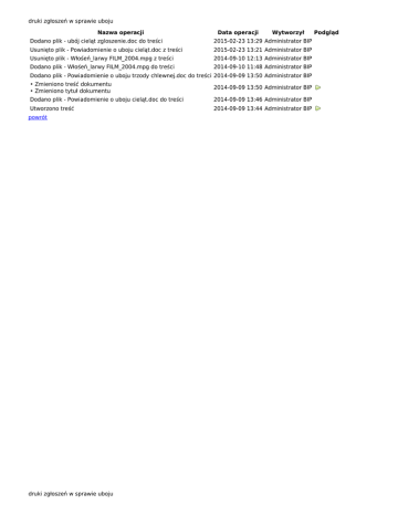 druki zgłoszeń w sprawie uboju Nazwa operacji Data operacji Wytworzył Dodano plik - ubój cieląt zgloszenie.doc do treści 2015-02-23 13:29 Administrator BIP Usunięto plik - Powiadomienie o uboju cieląt.doc z treści 2015-02-23 13:21 Administrator BIP Usunięto plik - Włośeń_larwy FILM_2004.mpg z treści 2014-09-10 12:13 Administrator BIP Dodano plik - Włośeń_larwy FILM_2004.mpg do treści 2014-09-10 11:48 Administrator BIP Dodano plik - Powiadomienie o uboju trzody chlewnej.doc do treści 2014-09-09 13:50 Administrator BIP • Zmieniono treść dokumentu • Zmieniono tytuł dokumentu 2014-09-09 13:50 Administrator BIP Dodano plik - Powiadomienie o uboju cieląt.doc do treści 2014-09-09 13:46 Administrator BIP Utworzono treść 2014-09-09 13:44 Administrator BIP powrót druki zgłoszeń w sprawie uboju Podgląd