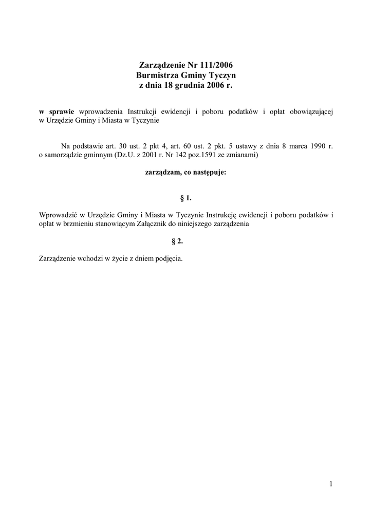 Zarządzenie Nr 111/2006 Burmistrza Gminy Tyczyn z dnia 18