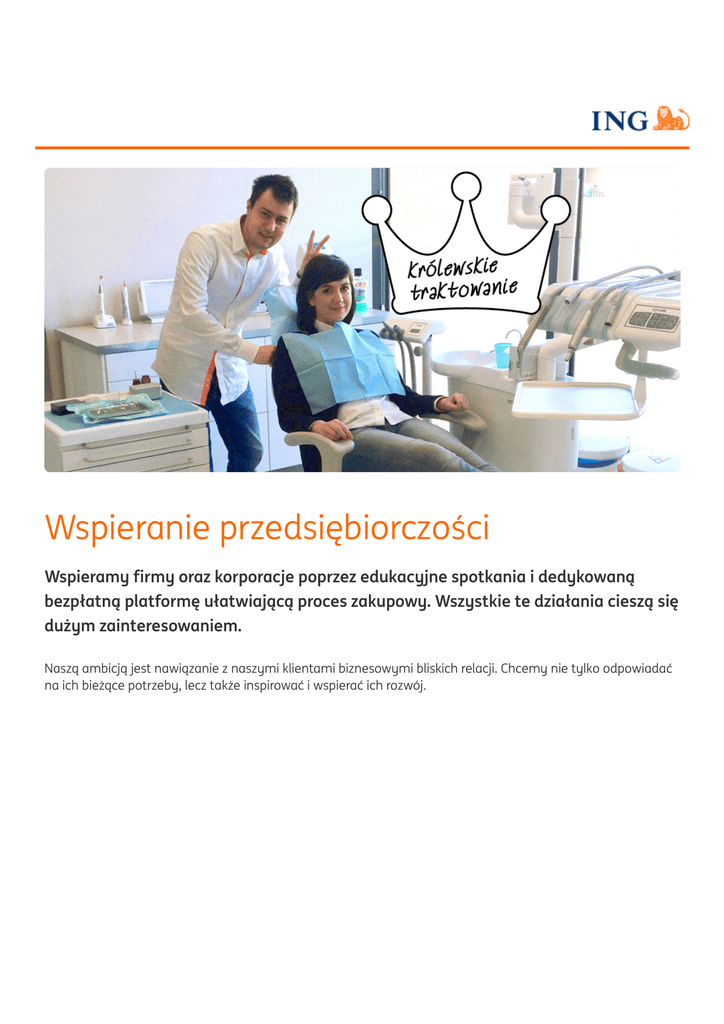 Wspieranie przedsiębiorczości Wspieramy firmy oraz korporacje poprzez edukacyjne spotkania i dedykowaną bezpłatną platformę ułatwiającą proces zakupowy. Wszystkie te działania cieszą się dużym zainteresowaniem. Naszą ambicją jest nawiązanie z naszymi klientami biznesowymi bliskich relacji. Chcemy nie tylko odpowiadać na ich bieżące potrzeby, lecz także inspirować i wspierać ich rozwój. Odkąd w 2013 roku znaleźliśmy się w gronie banków udzielających kredytów z gwarancją de minimis, aktywnie informujemy przedstawicieli małych i średnich przedsiębiorstw o tej unikalnej formie wsparcia ze strony państwa. Wypowiedzi pracowników banku na temat tego rodzaju zabezpieczenia kredytów ukazywały się w „Gazecie Wyborczej”, „Pulsie Biznesu”, „Rzeczpospolitej” i „Dzienniku Gazecie Prawnej”. Aktywnie uczestniczyliśmy też w inicjatywach upowszechniających wiedzę o środkach unijnych przeznaczonych na inwestycje i wdrożenie innowacji. We współpracy z BGK oraz innymi bankami kredytującymi na forum Związku Banków Polskich wypracowaliśmy produkt zabezpieczeniowy, który spotkał się z ogromnym zainteresowaniem klientów już od początku funkcjonowania Programu gwarancji de minimis. Duże zainteresowanie programem wymagało rzeczowej informacji dla klientów. Dlatego licznym wypowiedziom dla prasy i materiałom reklamowym dla klientów nadaliśmy charakter edukacyjny. Naszym celem było zapoznanie przedsiębiorców prowadzących pełną księgowość z sektora Małych i Średnich Przedsiębiorstw z warunkami programu, zgodnie ze Złotymi Zasadami Obsługi Klienta. Prezentowaliśmy korzyści i obowiązki, które wiążą się z programem. Dzięki wysiłkowi włożonemu w opracowanie produktu, wsparcie sprzedaży, obsługę i sprzedaż znaleźliśmy się w czołówce banków udzielających gwarancje de minimis, a także zdobyliśmy nagrodę i tytuł lidera w 2014 roku w kategorii „Największa sprzedaż gwarancji de minimis w odniesieniu do kapitałów własnych”. dr Joanna Pacuła Ekspert ds. Bankowości Korporacyjnej Departament Korporacyjnych Produktów Kredytowych Dużą popularnością cieszyły się inicjowane przez nas spotkania dotyczące sytuacji makroekonomicznej. W latach 2013-2014 część z nich organizowaliśmy we współpracy m.in. z „Pulsem Biznesu”, think-tankiem, lokalnymi izbami gospodarczymi i innymi organizacjami biznesowymi. Były wśród nich spotkania z ekonomistami, prof. Witoldem Orłowskim i prof. Grzegorzem Kołodko, jak również konferencje dla firm z sektora rolnego. Nie zapominaliśmy o eksporterach – dla nich przeznaczone były spotkania w ramach cyklu „Chiny dla polskich przedsiębiorców – praktyczne aspekty wymiany handlowej” w 2013 roku oraz kongres POLANDAFRICA 2014. Zorganizowaliśmy również konferencję dla firm rodzinnych oraz warsztaty poświęcone właściwemu planowaniu sukcesji w firmie. Funkcję edukacyjną pełniły też spotkania, w trakcie których prezentowaliśmy innowacyjną ofertę banku, m.in. bankowość mobilną, platformę Aleo, WebService, ING e-fakturę. Przy tej okazji wskazywaliśmy, jak narzędzia te mogą wzmocnić konkurencyjność firm. Platforma Aleo Aleo wdrożyliśmy w 2013 roku. Od początku jest to otwarta i kompleksowa platforma zakupowa. Dzięki niej zarówno małe, średnie i duże firmy, jak i korporacje mogą stosować profesjonalne narzędzia wspierające procesy zakupowe. Do tej pory tego typu rozwiązania były dostępne tylko dla tych, którzy mogli pozwolić sobie na kosztowne wdrożenie dedykowanych systemów informatycznych. Na Aleo wspieramy użytkowników zupełnie bezpłatnie, zapewniając im dostęp do: przejrzystego formularza zapytania ofertowego, bazy dostawców, a także możliwości sprawdzenia ich danych rejestrowych w Krajowym Rejestrze Sądowym, archiwum umów z dostawcami, modułu elektronicznych aukcji zakupowych, innowacyjnych produktów bankowych, takich jak Finansowanie Dostawców oraz usług z zakresu doradztwa zakupowego czy wyszukiwania dostawców na rynku. Narzędzia zakupowe na Aleo pozwalają na uzyskanie konkurencyjnych ofert od potencjalnych dostawców, porównanie ich i przeprowadzenie całego procesu zakupowego w jednym miejscu. Dodatkowo, oferując Finansowanie Dostawców, pomagamy małym i średnim firmom zarządzać płynnością finansową. Produkt ten pozwala na niemal natychmiastową wypłatę przez bank środków kontrahentom, umożliwiając jednocześnie ich spłatę w dogodnym dla usługobiorcy terminie. Jest to pierwsze tego typu rozwiązanie na polskim rynku. Liczba zarejestrowanych firm na Aleo firmy 9275 38 525 2013 2014 Innowacyjność Aleo sprawia, że coraz więcej firm rejestruje się na platformie. Stale wsłuchujemy się w głos klientów i rozwijamy jej funkcjonalność. W 2014 roku platforma została uznana za produkt roku w rankingu IT@BANK. Czytaj naszego bloga – publikujemy na nim artykuły o zakupach firmowych i sposobach optymalizacji kosztów.