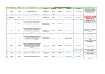 L.p. Miejscowość Gmina Nazwa podmiotu ulica i nr Dane teleadresowe miejsca udzielanej pomocy kod pocztowy telefon adres email adres www 58 686-56-12 [email protected] www.probonogdansk.pl 55 247-18-83 519-186-727 [email protected] www.agape.info.pl w instytucji może być wykonywana kara ograniczenia wolności (praca społeczenie użyteczna) 1 Banino Żukowo Stowarzyszenie "Pro Bono" ul. Orzechowa 15 80-297 2 Biała Góra Sztum Stowarzyszenie "Przystań" w Białej Górze Biała Góra 43A 82-400 3 Borowy Młyn Ryjewo Stowarzyszenie na Rzecz Bezdomnych Dom Modlitwy "AGAPE" zs. w Borowym Młynie Borowy Młyn 22 82-420 Brusy Ośrodek Pomocy Pokrzywdzonym Przestępstwem w Gdyni - Filia w Chojnicach - Punkt Mobilny w Brusach (podmiot prowadzący: Stowarzyszenie Pomorskie Centrum Terapeutyczno-Prawne INTERIOS) ul. Na Zaborach 1/14 (MGOPS w Brusach) 89-632 798-742-794 [email protected] www.interios.org.pl Bytów Ośrodek Pomocy Pokrzywdzonym Przestępstwem w Gdyni - Filia w Chojnicach - Punkt Mobilny w Bytowie (podmiot prowadzący: Stowarzyszenie Pomorskie Centrum Terapeutyczno-Prawne INTERIOS) ul. Podzamcze 34/12 (Fundacja Parasol) 77-100 798-742-794 [email protected] www.interios.org.pl 4 5 6 Brusy Bytów Chojnice Chojnice 7 Gardeja Gardeja 8 Gdańsk Gdańsk 9 Gdańsk Gdańsk 10 Gdańsk Gdańsk Ośrodek Pomocy Pokrzywdzonym Przestępstwem w Gdyni - Filia w Chojnicach (podmiot prowadzący: Stowarzyszenie Pomorskie Centrum Terapeutyczno-Prawne INTERIOS) Ośrodek Pomocy Pokrzywdzonym Przestępstwem w Gdyni - Filia w Kwidzynie - Punkt Mobilny w Gardei (podmiot prowadzący: Stowarzyszenie Pomorskie Centrum Terapeutyczno-Prawne INTERIOS) Centrum Wsparcia dla Dzieci i Młodzieży im. Bł. Piotra Jerzego Frassatiego (Caritas Archidiecezji Gdańskiej) Demokratyczna Unia Kobiet - Klub w Gdańsku Fundacja Oparcia Społecznego Aleksandry "Fosa" Inne informacje pomoc osobom bezdomnym, niepełnosprawnym, zagrożonym wykluczeniem społecznym, w szczególnie trudnej sytuacji życiowej 1. prawnik: pierwszy wtorek miesiąca 13.00-16.00; drugi wtorek miesiąca 8.00-10.00; trzeci wtorek miesiąca 8.00-11.00 2. psycholog: drugi i czwarty wtorek miesiąca 16.00-20.00 prawnik: pierwszy wtorek miesiąca 8.00-12.00; trzeci wtorek miesiąca 13.00-17.00 1. osoba pierwszego kontaktu: poniedziałek 12.00-20.00; wtorek, środa i piątek 8.00-15.00; czwartek 12.00-19.00 2. prawnik: poniedziałek 12.0020.00 3.psycholog: czwartek 15.00-19.00; piątek 8.00-11.00 ul. Strzelecka 31A/5 (MGOPS w Chojnicach) 89-600 798-742-794 [email protected] [email protected] www.interios.org.pl ul. Kwidzyńska 36 (GOPS w Gardei) 82-500 690-489-654 [email protected] www.interios.org.pl prawnik: pierwszy czwartek miesiąca 15.00-18.00 ul. Jesionowa 6 80-261 58 345-47-96 [email protected] www.gdansk.caritas.pl/placowki/8/ce ntrum-wsparcia-dla-dzieci-i-modziezyim-b-piotra-jerzego-frassatiego praca z dziećmi i młodzieżą z trudnych środowisk ul. Miszewskiego 17 pok 201 80-239 58 345-50-16 [email protected] www.duk.gdansk.pl ogranizacja wspomagająca kobiety, również legislacyjnie 80-268 58 344-96-00 58 344-96-01 (faks) www.fundacjafosa.pl aktywizacja społeczna i zawodowa osób z zaburzeniami psychicznymi, konsultacje, wsparcie, poradnictwo, socjoterapia ul. Chopina 42 [email protected] 11 Gdynia Gdynia Ośrodek Pomocy Pokrzywdzonym Przestępstwem w Gdyni (podmiot prowadzący: Stowarzyszenie Pomorskie Centrum Terapeutyczno-Prawne INTERIOS) ul. Śląska 53A lok.404-406 81-304 690-489-646 [email protected] 12 Gdynia Gdynia Pogotowie Pomocy Postpenitencjarnej w Gdyni (podmiot prowadzący: Stowarzyszenie "Alterego") ul. Leszczynki 153 81-200 58 713-57-44 [email protected] 13 Gdynia Gdynia 14 Gdynia Gdynia 15 Gniew Gniew 16 Gniew Gniew 17 Jastarnia Jastarnia 18 Kwidzyn Kwidzyn Schronisko dla Bezdomnych Osób i Rodzin (podmiot prowadzący: Stowarzyszenie "Alterego") Schronisko dla Osób Bezdomnych wraz z punktem Interwencji Noclegowej w Gdyni (podmiot prowadzący: Stowarzyszenie "Alter-ego") Gniewski Klub Abstynenta "Podać rękę" Ośrodek Pomocy Pokrzywdzonym Przestępstwem w Gdyni - Filia w Tczewie - Punkt Mobilny w Gniewie (podmiot prowadzący: Stowarzyszenie Pomorskie Centrum Terapeutyczno-Prawne INTERIOS) ul. Leszczynki 153 58 713-57-44 ul. Wiśniewskiego 24 81-335 58 776-20-01 Plac Grunwaldzki 14 83-140 58 535-36-60 ul. Witosa 9 (GMOPS w Gniewie) 83-140 690-489-658 Ośrodek Pomocy Pokrzywdzonym Przestępstwem w Gdyni - Punkt Mobilny w Jastarni (podmiot ul. Portowa 24 prowadzący: Stowarzyszenie Pomorskie Centrum (Urząd Miasta w Jastarni) Terapeutyczno-Prawne INTERIOS) Ośrodek Interwencji Kryzysowej w Kwidzynie Fundacji Edukacji i Rozwoju "FLOW" 81-200 ul. Chopina 26/201 (II p.) [email protected] www.interios.org.pl www.schronisko-gdynia.org.pl Placówka całodobowa – przyjęcia na podstawie skierowania wystawionego przez Centrum Reintegracji i Interwencji Mieszkaniowej MOPS Gdynia ( ul. Działowskiego 11, 81-202 Gdynia) Schronisko: Placówka całodobowa – przyjęcia na podstawie skierowania wystawionego przez Centrum Reintegracji i Interwencji Mieszkaniowej MOPS Gdynia ( ul. Działowskiego 11, 81-202 Gdynia); Punkt Interwencji Noclegowej: czynny przez wszystkie dni w roku od 19:00 do 8:00 dnia następnego, nie obowiązują skierowania [email protected] [email protected] 1. osoba pierwszego kontaktu: poniedziałki 8.00-16.00; wtorki 11.00-19.00; środy 12.00-20.00; czwartki i piątki 8.00-16.00; 2. prawnicy: poniedziałki 13.0016.00; wtorek 13.00-19.00; środa 16.00-18.00; piątki 14.00-16.00 3. psycholodzy: poniedziałki 9.0012.00; czwartki 10.00-13.00 www.interios.org.pl 84-140 690-489-646 [email protected] www.interios.org.pl 82-500 512-909-991 [email protected] http://www.interwencjakryzysowa.pl /osrodki-interwencji-kryzysowej/0285 zajęcia grupy AA 1. prawnik: drugi i czwarty czwartek miesiąca 12.00-14.00 2. psycholog: ostatnia środa w miesiącu 8.00-12.00 1. prawnik: ostatnia środa miesiąca 9.00-13.00 2. psycholog: ostatnia 