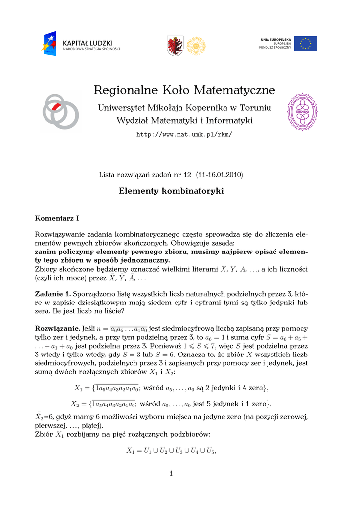 Komentarz VI Prawdziwe jest twierdzenie: Jeżeli zbiór X ma n elementów i k