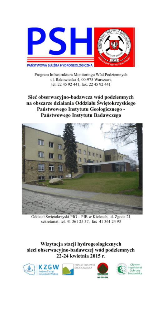 Program Infrastruktura Monitoringu Wód Podziemnych ul. Rakowiecka 4, 00-975 Warszawa tel. 22 45 92 441, fax. 22 45 92 441 Sieć obserwacyjno-badawcza wód podziemnych na obszarze działania Oddziału Świętokrzyskiego Państwowego Instytutu Geologicznego Państwowego Instytutu Badawczego Oddział Świętokrzyski PIG – PIB w Kielcach, ul. Zgoda 21 sekretariat: tel. 41 361 25 37, fax 41 361 24 93 Wizytacja stacji hydrogeologicznych sieci obserwacyjno-badawczej wód podziemnych 22-24 kwietnia 2015 r. Pracownicy Programu Infrastruktura Monitoringu Wód Podziemnych: dr Marcin Kos – opiekun regionalny email: [email protected] mgr inż. Tomasz Młyńczak email: [email protected] Anna Kącka email: [email protected] Ryszard Bednarczyk Zarys budowy geologicznej i warunków hydrogeologicznych Obszar działania Oddziału Świętokrzyskiego PIG – PIB w Kielcach obejmuje swym zasięgiem przede wszystkim trzon paleozoiczny Gór Świętokrzyskich oraz ich osłonę mezozoiczną. Ponadto obejmuje on także część niecek: Miechowskiej i Lubelskiej, oraz fragmentarycznie północną część zapadliska przedkarpackiego. Centralna część opisywanego obszaru zbudowana jest z utworów staropaleozoicznych: piaskowców, mułowców i iłowców, kambru, ordowiku oraz syluru i dolnego dewonu. Występują tu także utwory węglanowe (wapienie i dolomity) dewonu środkowego i górnego. W znacznie mniejszym stopniu reprezentowane są skały młodopaleoziczne – cechsztyńskie zlepieńce. W osłonie mezozoicznej występują skały zarówno triasowe (piaskowce, wapienie), jak i jurajskie (piaskowce, wapienie), a także kredowe (margle, wapienie). Cechą charakterystyczną obszaru działania OŚ PIG – PIB w Kielcach jest występowanie wychodni skał przedczwartorzędowych, przy stosunkowo niewielkim udziale utworów najmłodszych czyli trzeciorzędowych oraz czwartorzędowych w budowie geologicznej. Pod względem hydrodynamicznym granice opisywanego obszaru wyznaczają: od północy i zachodu – dział wodny rzeki Pilicy, zaś od południa i wschodu koryto rzeki Wisły. Na omawianym terenie warunki hydrogeologiczne są funkcją budowy geologicznej. Ze względu na znaczne urozmaicenie budowy geologicznej warunki hydrogeologiczne są również bardzo skomplikowane. W obszarze występowania trzonu paleozoicznego Gór Świętokrzyskich mamy do czynienia z obecnością terenów całkowicie bezwodnych, których granice wyznacza zasięg utworów kambryjskich. Występują tu także obszary bardzo słabowodonośne zbudowane ze skał ordowiku, syluru i dewonu dolnego. W pozostałych utworach występują użytkowe poziomy wodonośne. Wyjątkiem są tylko bezwodne trzeciorzędowe iły krakowieckie wypełniające północną część zapadliska przedkarpackiego i występujące na południu opisywanego obszaru. Monitoring Wód Podziemnych W Oddziale Świętokrzyskim PIG – PIB w Kielcach systematyczne pomiary i obserwacje monitoringowe prowadzone są od lat 80 ubiegłego wieku. W chwili obecnej (stan na koniec I kwartału 2015 r.) monitoring stanu ilościowego i chemicznego jest prowadzony w 99 stacjach hydrogeologicznych II rzędu oraz w 4 stacjach hydrogeologicznych I rzędu. Łącznie jest on prowadzony w 115 punktach badawczych. Spośród tych punktów największą część stanowią nieczynne studnie wiercone. Oprócz studni badania monitoringowe są prowadzone w otworach hydrogeologiczno – badawczych należących do Instytutu oraz w małośrednicowych piezometrach obserwacyjnych. W ramach reorganizacji sieci obserwacyjno-badawczej w obszarze działania Oddziału do chwili obecnej odwiercono i włączono do sieci obserwacyjnobadawczej wód podziemnych 9 nowych piezometrów, a także 10 nieczynnych studni wierconych. Nowoodwiercony piezometr obserwacyjny w Trzonowie - stacja hydrogeologiczna nr II/1776/2 Profil geologiczno – techniczny piezometru w Trzonowie Opisywany piezometr ma głębokość 55,0 m i ujmuje górnokredowy poziom wodonośny występujący w marglach. Obserwacje wahań zwierciadła wody prowadzone są od listopada 2013 r. W punktach obserwacyjnych znajdujących się pod opieką Oddziału systematycznie od końca 2013 r. montowana jest automatyka pomiarowa. W chwili obecnej pomiary automatyczne wykonywane są w 40 punktach (na ogólną ich liczbę – 115). Przykładowy montaż modułu do automatyki pomiarowej na stacji hydrogeologicznej nr II/372/1 w Sukowie Od 2013 r. Oddział Świętokrzyski w Kielcach opiekuje się stacjami hydrogeologicznymi I rzędu: stacja hydrogeologiczna Kaplica nr: I/474 stacja hydrogeologiczna Sędów nr: I/475 stacja hydrogeologiczna Nałęczów nr: I/390 stacja hydrogeologiczna Podlesie nr: I/470 Spośród tych stacji najbliżej siedziby Oddziału w granicach administracyjnych Kielc znajduje się stacja w Nałęczowie. Zostały na niej odwiercone 4 otwory hydrogeologiczno – badawcze: - otwór nr 1 o głębokości 250 m ujmujący środkowodewoński poziom wodonośny - otwór nr 2 o głębokości 185 m ujmujący cechsztyński poziom wodonośny - otwór nr 3 o głębokości 87 m ujmujący dolnotriasowy poziom wodonośny - otwór nr 4 o głębokości 25 m ujmujący czwartorzędowy poziom wodonośny Stacja hydrogeologiczna w Nałęczowie nr I/390 Na stacji hydrogeologicznej Podlesie znajduje się 5 otworów: 3 hydrogeologiczno – badawcze oraz 2 piezometry. Są to: - otwór nr 1 o głębokości 50 m ujmujący górnokredowy poziom wodonośny - piezometr nr 2 o głębokości 250 m ujmujący górnojurajski poziom wodonośny - otwór nr 3 o głębokości 570 m ujmujący górnojurajski poziom wodonośny - otwór nr 4 o głębokości 84 m ujmujący górnokredowy poziom wodonośny - piezometr nr 5 o głębokości 12 m ujmujący górnokredowy poziom wodonośny Opracowali: dr Marcin Kos mgr inż. Tomasz Młyńczak
