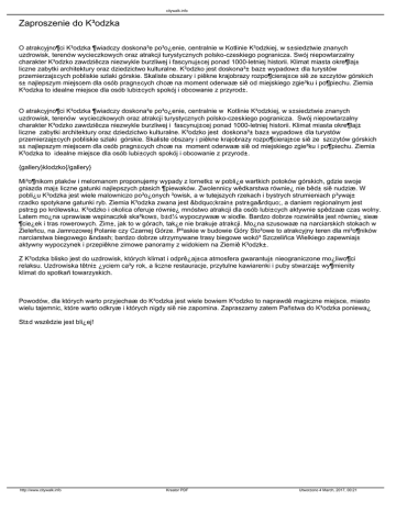 wielu tajemnic, które warto odkryæ i których nigdy siê nie zapomina. Zapraszamy zatem Pañstwa do K³odzka poniewa¿