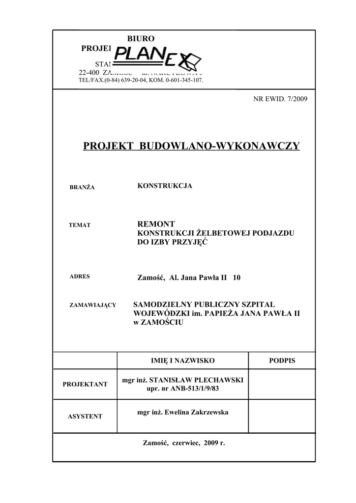 projekt budowlano-wykonawczy - Samodzielny Publiczny Szpital