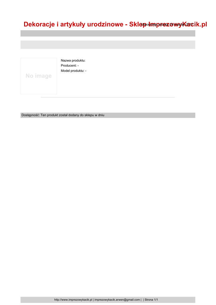 Utworzono: sobota, 04 marzec 2017 Dekoracje i artykuły urodzinowe - Sklep ImprezowyKacik.pl Nazwa produktu: Producent: Model produktu: - No image Dostępność: Ten produkt został dodany do sklepu w dniu http://www.imprezowykacik.pl | [email protected] | | Strona 1/1