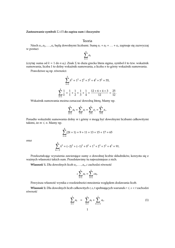 ważnych własności takich sum. Przedstawimy tu najważniejsze z nich.