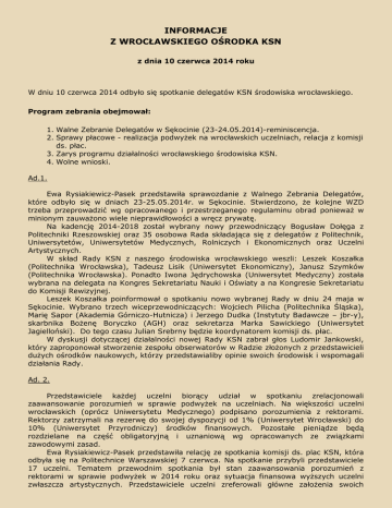 Informacje z wrocławskiego ośrodka KSN (10.06.2014 r.)