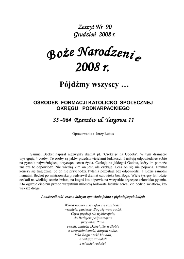 opłatkowych podejmowaliśmy różnorodne tematy przypominające nam te jakże doniosłe